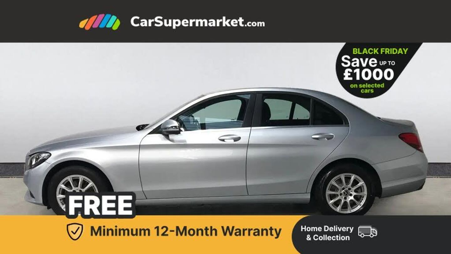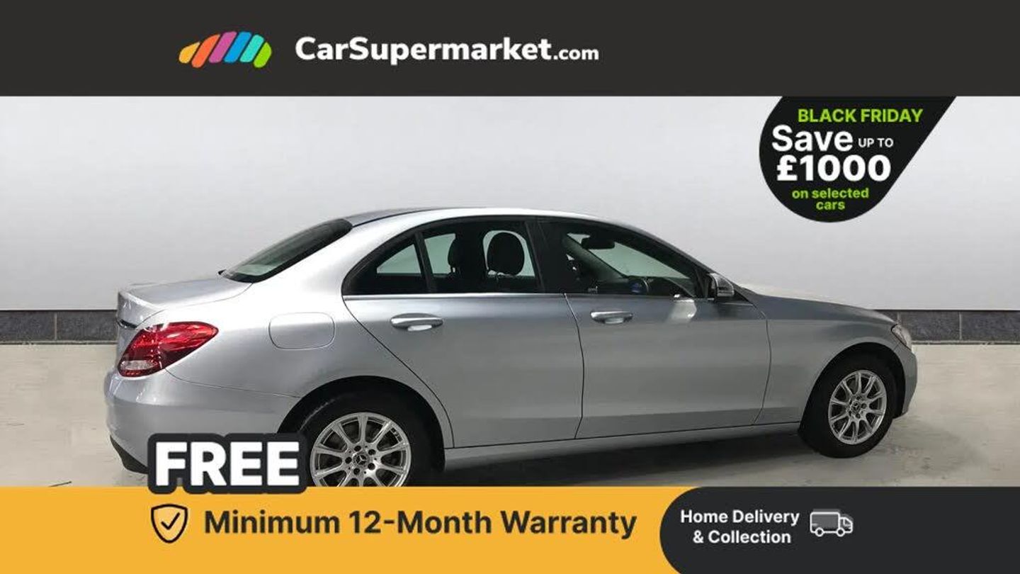Attention assist,Bluetooth system,Collision prevention assist,Cruise control with speedtronic variable speed limiter,DYNAMIC SELECT with a choice of driving modes (ECO, Comfort, Sport, Sport+ and Individual),Multi function trip computer,Multifunction colour display,Outside temperature gauge,Remote boot release,Reversing camera,Service indicator (ASSYST PLUS),Speed sensitive steering,Agility control suspension with selective damping system,2 USB ports in centre console,DAB Digital radio,Frontbass loudspeakers,Mercedes Audio 20 radio/single CD + telephone keypad,SD card slot,Adaptive brake lights,Body coloured bumpers,Electric windows one touch open/close,Electrically adjustable and heated door mirrors,Green tinted glass,LED daytime running lights,LED tail lights,Radiator grille with integral star and 2 louvres in matt iridium silver,Rain sensor windscreen wipers,Side windows surround in matt black,2 cupholders in front centre console,3 spoke leather steering wheel,Artico man-made leather gear lever gaiter,Artico man-made leather upholstery,Auto Mercedes-Benz child seat recognition sensor,Dual zone automatic climate control,Electric front seat height adjustment,Front and rear head restraints,Front centre armrest with storage compartment,Gear lever with high gloss black insert,Height/reach adjustable steering column,Illuminated glovebox,Lumbar support,Multifunction steering wheel,Rear top tether child seat ISOFIX attachment,Seat comfort pack - C Class,Stowage space pack - C Class,3 rear 3 point seatbelts,ABS with Brake Assist,Active bonnet,Adaptive brake system,Child proof door locks,Drivers knee airbag,Dual stage driver/passenger airbags,Electronic parking brake,ESP with ASR,Front passenger seat occupancy sensor,Front side airbags,Hill start assist,Rear seatbelt warning indicator,Tyre pressure monitoring system,Warning triangle and first aid kit,Window airbags,Alarm system/interior protection/immobiliser,Chrome surround in electric key,Remote central locking,Black high gloss trim,16" multi spoke alloy wheel painted in vanadium silver,Tyre inflation kit,Diamond Silver