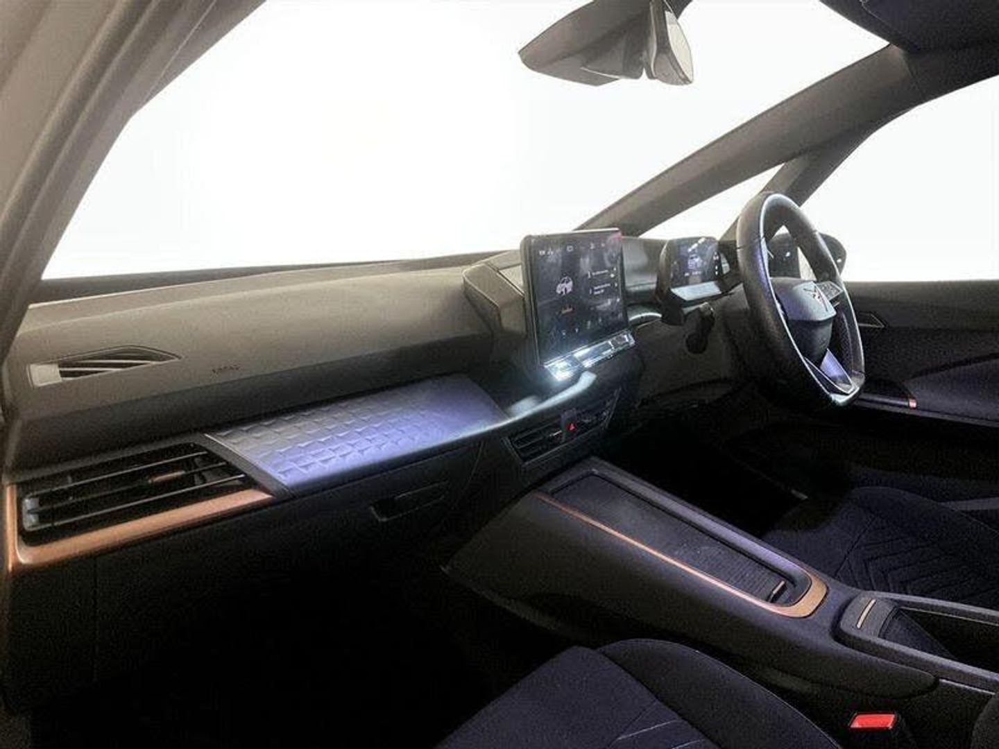 [Audio and Communications]5 Infotainment Speakers, Bluetooth without Wireless Charger, DAB and AM/FM Radio, USB Type C x4 - x2 Front and x2 Rear, Wireless Full Link Smartphone Integration, e-Call Service, [Drivers Assistance]Augmented Reality Head-Up Display, Driver Alert System - Tiredness Recognition, Driving Profile Selection, Forward Collision Warning with Automatic Braking, Park Distance Control in Front and Rear, Tyre Pressure Monitoring System, Voice Assistant, [Exterior]19in Alloy Wheels - Machined Typhoon, CUPRA Emblem on Steering Wheel, Dark Tinted Rear Windows, Door Mirrors Electrically Adjustable - Folding and Heated, Electric Window - Front, Grey Exterior Mirrors, Heat-insulated Glass and Acoustic Windshield, Heated Washer Nozzles, Locking Wheel Bolts with Anti-theft Protection, Transport Protection Film, [Illumination]Full LED Headlights with Welcome Home Function and Adverse Weather Function, LED Rear Lights, [Interior]5.3in Digital Cockpit with 12in Central Display Infotainment System, Aluminium Pedals, Auto Dimming Rear View Mirror, Climatronic Dual-Zone Air Conditioning, Drivers and Passenger Seats - Manual Height Adjustment, Heated - Leather-Wrapped - Multifunction Steering Wheel, Heated Front Seats, Keyless-Go Central Locking System, Multi-Coloured Interior Ambient Lighting, Recycled Black Interior Roof, Sunvisor with Illuminated Mirror, Unsplit Rear Seat Bench - Split Folding Backrest without Centre Armrest, Windshield Wiper with Light-Rain Sensor, Without Armrests for Front Seats, Without Heat Pump, Without Lumbar Support in Seat Backrests, [Performance]Charging Cable - Mode 3 - 16amp, Dynamic Steering, Electric Auxiliary Air Heater, Shock Absorption in Front, Sports Rear Shock Absorption, [Safety and Security]3-Point Seatbelts, ABS - Anti-Lock Braking System, Anti-Theft Alarm System - Interior Monitoring - Backup Horn and Towing Protection, CUPRA Connect - Safety - Service - Remote and Online, Driver and Front Passenger Airbags with Front Passenger Airbag Deactivation - Side Airbag in Front with Curtain Airbag and Interaction Airbag, Emergency Steering Support with Turn Assist, Extended Safety System, ISOFIX Points in Outer Rear Seats with Top Tether Anchorage Points, Lane Assist, Pilot - M, Visual and Acoustic Seatbelt Reminder