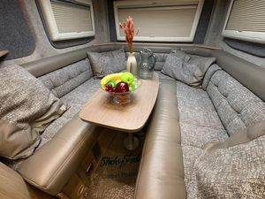 Awning, End Lounge, Fridge/Freezer, Hob, Electric Entrance Step, Sink, Shower, Toilet, Swivel Chairs, Swivel Drivers Seat, Swivel Passenger Seat, Tow bar and electrics, Reversing Sensors, Reverse Camera, Oven, Skylight