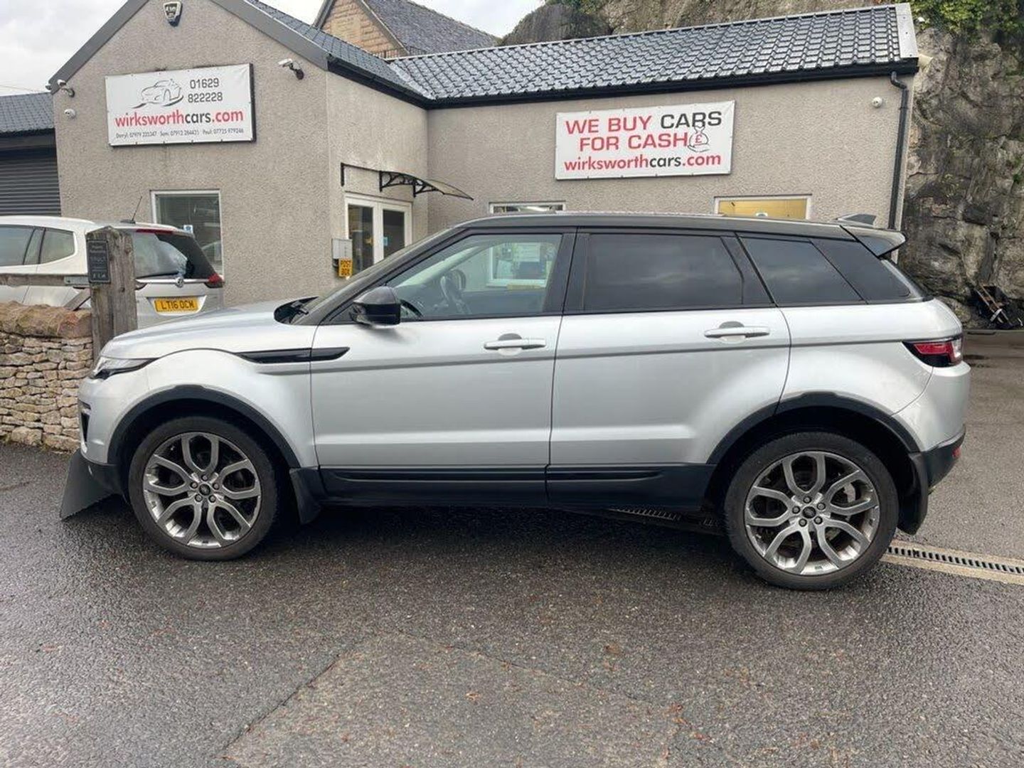 **HERE AT wirksworthcars.com WE HAVE THE PLEASURE IN ADVERTISING FOR SALE THIS STUNNING VERY WELL MAINTAINED AUTOMATIC, 5 DOOR, 2ltr DIESEL RANGE ROVER EVOQUE SE Tech IN SILVER WITH BLACK ROOF & FULL PANORAMIC ROOF**EURO 6**FULL SERVICE HISTORY WITH 7 SERVICES & WILL BE SERVICED WHEN SOLD**SAME LADY OWNER LAST 4yrs ( 2 former keepers )**FULL BLACK LEATHER INTERIOR**FRONT ELECTRIC SEATS WITH MEMORY FUNCTION TO BOTH FRONT SEATS**HEATED FRONT SEATS**HEATED LEATHER MULTI-FUNCTION STEERING WHEEL WITH GEAR CHANGE PADDLES**HEATED FRONT & REAR SCREENS (ideal for these colder mornings)**SAT NAV**REVERSE CAMERA WITH FRONT & REAR PARKING SENSORS**CLIMATE CONTROL**A/C**CRUISE CONTROL**ESP**HDC (hill decent control)** SWITCHABLE STOP/START**DAB RADIO**AUX PORT**BLUETOOTH**AUTO DIMMING REAR VIEW MIRROR**AUTO WIPERS**AUTO LIGHTS**4 x ELECTRIC WINDOWS**ELECTRIC FOLDING DOOR MIRRORS**PRIVACY GLASS IN REAR**ISOFIX**ELECTRIC TAILGATE**20" ALLOYS**HEADLAMP WASHER JETS**REMOTE CENTRAL LOCKING**OWNERS MANUAL**2 x KEYS**VERY GOOD MPG**ONLY £195 ROAD TAX** wirksworthcars.com formally known as baileycroft vehicle sales is family owned business in Derbyshire. All our cars are fully HPI CHECKED . Finance is also available subject to status please feel free to call either Darryl on 07979 225347 for any further help or to book a viewing.