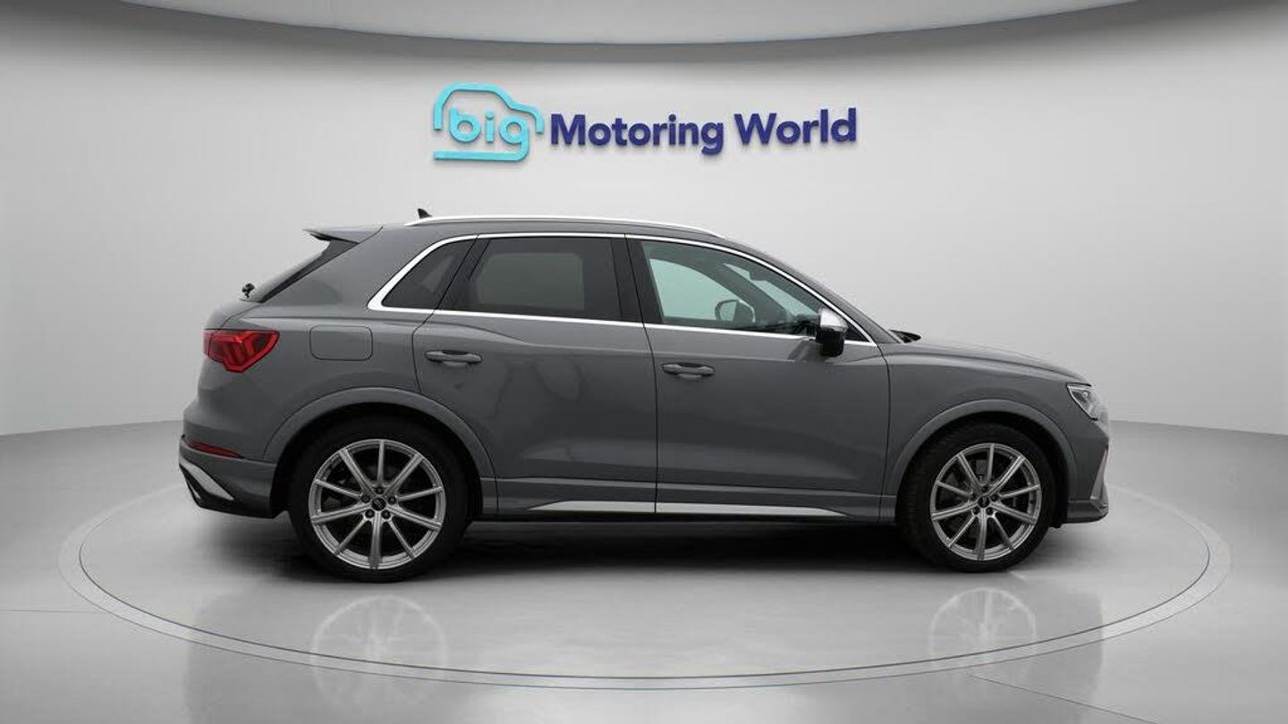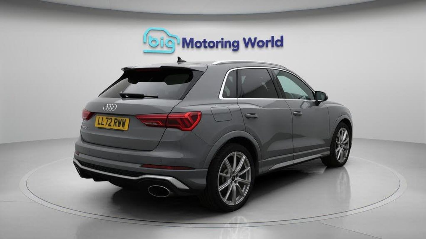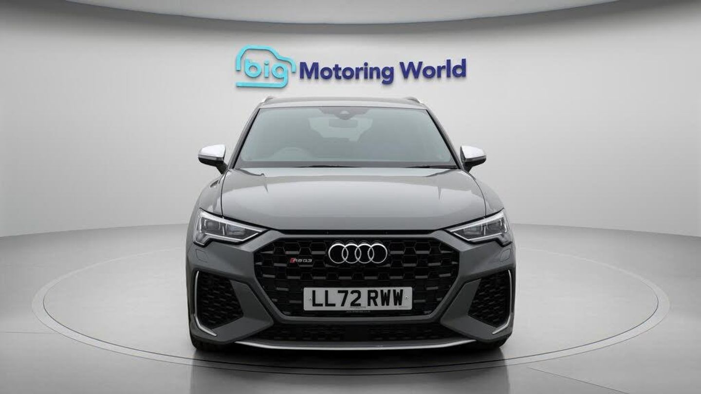 All Wheel Drive,Leather Seats-Our Audi RS Q3 is finished in Grey. Specification includes a range of fantastic features including All Wheel Drive, Leather Seats, Apple CarPlay, Lane Assist, S Line Body Styling, Android Auto, Satellite Navigation, Privacy Glass, Heated Seats, Bluetooth Specification information is supplied by CAPHPI and may vary to the actual car. This data does not form any part of a buying contact. Please check specification prior to purchase in-store. The MOT is valid until October 2026, visit bigmotoringworld.co.uk for more photos, a 360 tour, service history and a free HPI report.Were BIG on peace of mind and this Grey Audi RS Q3 has completed our comprehensive 200 point inspection and passed all checks. Its ready for you to drive away with immediate collection in-store. We include a 90-day warranty as standard plus an option to extend for up to 3 years.Reserve this car exclusively for you, safely and securely at bigmotoringworld.co.uk, with a fully refundable £99 deposit. Test drive before you buy, with no commitment, no hassle and a completely haggle free experience. Still searching and want to see thousands more cars? We are BIG on choice with over 8000 cars to choose from.Visit our award winning web site bigmotoringworld.co.uk.Were Big Motoring World and were BIG on what matters to you.