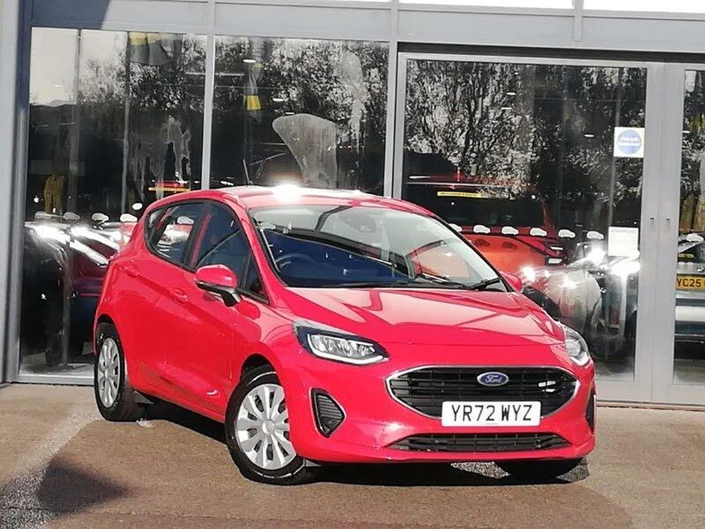 16" 8 spoke alloy wheels with rock metallic machined finish, NCAP Pack - Fiesta, Ford SYNC includes 8" touchscreen, 6 speakers, apple carplay, android auto and emergency assistance, Steering wheel audio controls, Bluetooth system, Electric power steering, Ford easy fuel, Selectable drive modes (Normal, Sport, Track), 2 USB ports, DAB Digital radio, Solid paint, Quickclear heated windscreen, Mesh design front grille with chrome surround, Electric front windows/one touch facility, 60/40 split folding rear seat, Ambient lighting, Cloth upholstery, Manual air conditioning, LED daytime running lights, LED Headlights, MyKey system