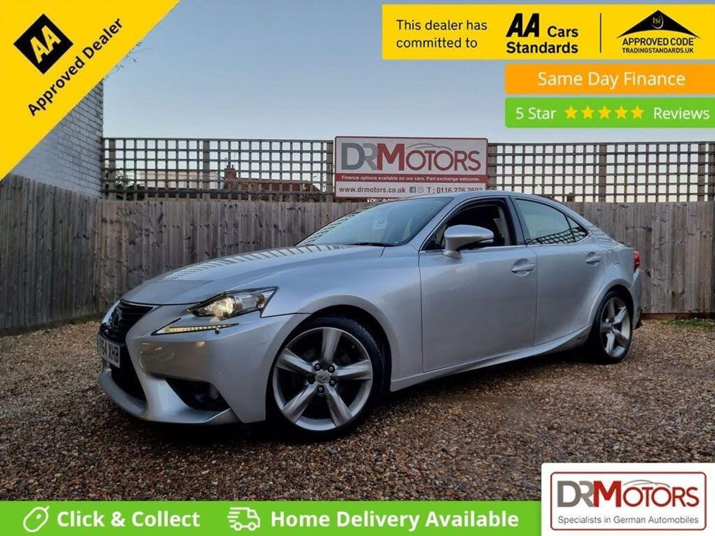 Lexus IS 2.5 300h Premier Saloon (Petrol Hybrid, Automatic) New Year Special Offer – 2 years Nationwide Gold Warranty Included in the Price This Lexus IS 300h Premier is a superb example, finished in a beautiful colour combination and presented in very clean condition both inside and out. Offering smooth automatic performance, excellent fuel efficiency, and low running costs, this petrol hybrid saloon delivers luxury, comfort, and reliability in one refined package. The car benefits from only £20 per year road tax, is ULEZ compliant, and comes with low mileage. Features include satellite navigation, rear parking camera, front and rear parking sensors, heated and ventilated leather seats, electric memory seats, an electric sunroof, Bluetooth handsfree, cruise control, DAB radio, USB and AUX connectivity, and stylish 18-inch alloy wheels. With a spacious boot, four doors, two keys, and MOT valid until December 2026, this vehicle is practical as well as premium. This automatic Lexus is very fuel efficient, offers low running costs, and drives beautifully. It is in lovely condition throughout and represents excellent value for money – first to see will buy. We currently have over 150 DR Approved Used Cars on site and are proud winners of the CarGurus Top Rated Dealer Award in 2020, 2021, and 2022. DR Motors is both a Trading Standards Approved Garage and an AA Approved Dealer, reflecting our commitment to quality and customer satisfaction. Every vehicle is Experian HPI clear and comes with 12 months free AA Breakdown Cover. All vehicles are sold with a nationwide 6-month Gold Warranty, with upgrade options available to 12 months for £399 or 24 months for £599. Debit cards are accepted, part exchange is welcome, and finance options are available—please call for details. A deposit can be taken to reserve this vehicle. Please note there is an administration fee of £149 in addition to the vehicle price. Viewing is by appointment only. Please visit our website at www.drmotors.co.uk or call our Sales Manager Jason anytime on 07858 818 903 to arrange a viewing or discuss finance options. Every effort has been made to ensure the accuracy of the information above. Please check with a member of our sales team regarding any details that may affect your purchasing decision.