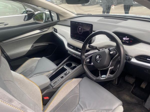 12V Socket in Boot, 13in Touchscreen Display, 19in Alloy Wheels - Proteus, 2-Spoke Leather Multifunction Steering Wheel, 50 KW DC Charging, ABS - Anti-Lock Braking System, Air Conditioning - Climate Control Dual Zone, Airbag - Front Side with Curtain Airbags and Central Interaction Airbag, Alarm with Interior Monitoring - Back Up Horn and Towing Protection, Anti-Theft Locking Wheel Bolts, Basic LED Headlights with LED Daytime Running Lights and Headlight Range Control, Black Roof Rails, Bluetooth, Care Connect - eCall, Child Safety Lock - Manual, Cruise Control with Speed Limiter, DAB Radio, Door Mirrors - Heated - Electronically Adjustable - Folding and Auto Dimming with Boarding Spots and Welcome Logo, Driver and Front Passenger Airbags with Front Passenger Airbag Deactivation, Front Assistant including Automatic Braking Function, Front and Rear Electric Windows, Gesture Control, Height Adjustable Driver and Front Passenger Seat - Manual, ISOFIX Child Seat Fittings on Outer Rear Seats with Top Tether, ISOFIX Child Seat Preparation - Front Passenger, Interior Package - Loft, Keyless Start-Stop, LED Ambient Lighting, Lane Assist, Light Assistant, Light and Rain Sensor with Auto-Dimming Rear View Mirror, Luggage Compartment - Boot Lighting, Manual Lumbar Support for Front Seats, Mode 3 Cable - 32A - 6 Metres, Parking Sensors - Rear, Power Steering, Radiator Grille in Matt Black with Chrome Surround, Rear Lights - LED, Rear Spoiler, Rear Window Wiper with Washer System and Intermittent Control, Remote Central Locking with SAFE Function, Satellite Navigation System, Seatbelt Reminder - Visual and Acoustic, Side and Rear Windows in Heat Insulating Glass, Single Tone Horn, Skoda Connect - Infotainment Online - 3 years, Skoda Connect - iV Remote Services, Sliding Boot Cover, Speakers x8, Standard Electronic Engine Sound, Three Point Seatbelt in Front with Pretensioner - Lap Belt Pretensioner and Height Adjustment, Three Rear Head Restraints, Tyre Pressure Monitor, USB-C Ports, Umbrella, Virtual Cockpit, Voice Control, Washer Fluid Level Indicator, Wifi Hotspot for Up To 8 Devices, Windscreen in Heat Insulating Glass, Wireless Smartlink