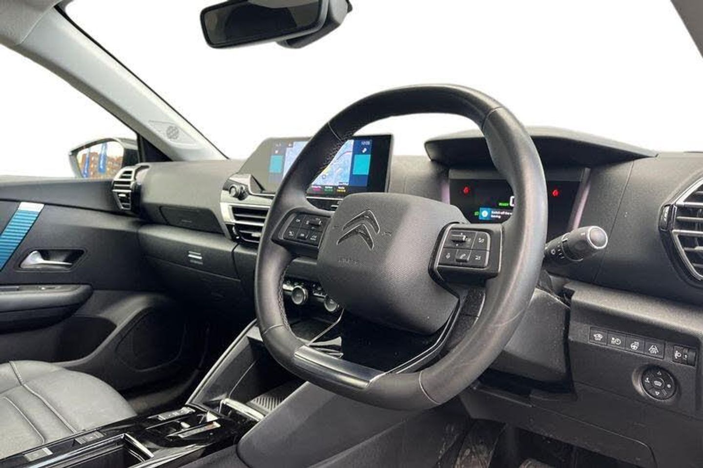 5.5 inch backlit full TFT driver's instrument cluster with LED ambient lighting, Active blind spot detection, Apple car play and Android auto, Citroen connect box emergency and assistance system, Citroen Smart Pad Support - integrated support for attaching a tablet computer for front passenger, Driver's head-up display, Electronic Power Steering (EPS), Front, rear and lateral parking sensors, In-crash braking, My Citroen Drive Plus: 10 high-resolution touchscreen user interface, controlling media, connectivity, vehicle settings + connected nav, Speed limiter, Tailgate, Top rear vision reversing camera, Voice commands, 3rd brake light, Automatic headlights, Body colour bumpers, Body colour door handles, Boot spoiler, Dark tinted rear windows and side windows with chrome detail, Electrically heated, folding and adjustable external rear view mirrors with courtesy lighting, Electrochrome interior rear-view mirror with automatic day-night switching, Front and rear electric windows, Gloss black rear skirt, Intelligent beam headlights, LED daytime running lights in V signature, LED front fog lamps with static cornering function, LED front headlamps, Perla Nera black painted external rear view mirrors, Rain sensing automatic front windscreen wipers, Rear side wing doors, Rear wiper, Shark fin roof aerial, Welcome and goodbye lighting, 12V power outlet, 1x USB Type-C socket & data connection, 1x USB Type-A socket at 1st row + 1x USB Type-A socket , 1x USB Type-C socket in 2nd row, 3 rear headrests, 3 seat bench in 2nd row, Boot light, Dashboard tray in front cabin, Deluxe leather steering wheel with two command blocks, Driver and passenger sunvisors with illuminated vanity mirrors, Dual zone automatic air conditioning, Electrically heated front seats, Front and rear LED interior lighting, Front head restraints, Heated steering wheel, Height adjustable front passenger seat, Height and reach adjustable steering wheel, Map pockets in rear of front seats, Raised centre console with armrest and two cup holders, Rear central folding armrest with cupholders and ski hatch, Remote temperature pre-conditioning, Single front passenger seat, Split folding rear seats, Two position boot floor, 3x3 point rear seatbelts, ABS, Driver and front passenger airbags, Electric parking brake, ESP, Front seatbelt pretensioners, Hill start assist, Manual child lock in second row, Manual deactivation of front passenger airbag, Row 1 and 2 curtain airbags, Row 1 side thorax airbags, Seatbelt unfastened on the move warning, Tyre underinflation detection