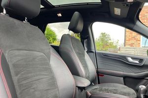 12.3 digital colour instrument cluster, Ford easy fuel, Ford SYNC 3 with 8 TFT LCD touchscreen, App Link, andriod auto/apple carPlay, emergency assistance and navigation with Ford pass connect, Front and rear parking sensors, Hands free power tailgate, Lane keeping aid with lane departure warning, Power assist steering, Rear view camera, Selectable drive modes, Service interval indicator, Auto headlamps with high and low beam, Black roof rails, Body colour bumpers, Day/night rear view mirror, Front LED fog lamps, Large rear roof spoiler, LED daytime running lights, LED rear lights, Power folding, electrically adjustable and heated door mirrors with puddle lights, Power front/rear windows with global close, Power opening panoramic roof, Quickclear heated windscreen, Rain sensing wipers, Rear privacy glass, Rear side wing doors, Rear wiper, ST Line body styling kit with unique front and rear fascia and bumper, rear painted diffuser, front painted skid plates, dark mesh upper grille, ST Line front scuff plates, Third brake light, Twin exhausts, 2nd row sliding seats with 60:40 split, Alloy pedals, Centre console with electronic parking brake, Dark headlining and pillars, Electronic automatic temperature control (EATC), Flat bottomed leather steering wheel in sensico with red stitching, Front and rear head restraints, Heated passenger and driver seats, Heated rear seats, Heated steering wheel, Partial premium touch Sensico with black cloth inserts and red stitching, Rear centre head restraint, Single front passenger seat, Sports seats, ST Line front and rear floor mats, ST Line gear knob, 3x3 point rear seatbelts, Airbags - front driver/passenger, front and rear curtain, Drivers knee airbag, Electronic stability control (ESC) and ABS, Ford MyKey Gen 2 safety system, Manual child proof rear door locks, Post collision braking, Pre collision assist with autonomous emergency braking, Rear seat Occupancy alert, Red brake calipers, Tyre pressure monitoring system