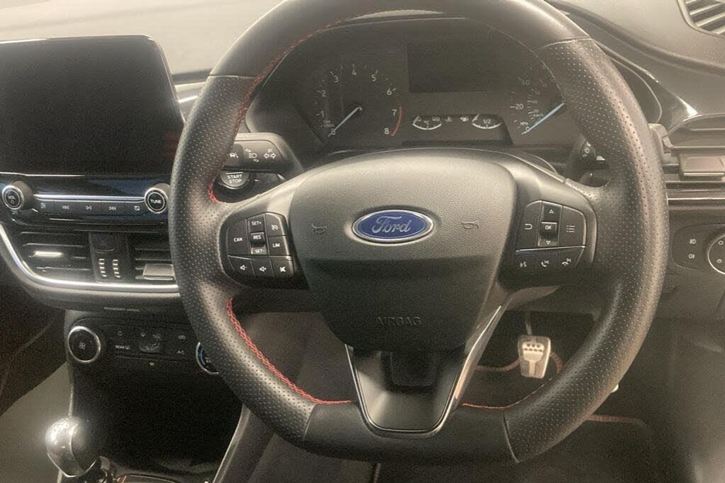 17in Alloy Wheels - 5x2-Spoke - Rock Metallic, 4.2in TFT Ice Blue Illumination Analogue Cluster with Trip Computer, Active Grille Shutter, Air Conditioning - Manual, Airbags - Driver and Front Passenger, Airbags - Front Side Impact, Airbags - Side Curtain, Anti-Lock Braking System - ABS with Electronic Brake Force Distribution - EBD, Auto Dimming Rear View Mirror, Black Interior Headlining, Cargo Area Cover, Centre Console - Premium with Openable Stowage Area with USB Connectivity - 2 Cupholders and 12v Power Point, Chrome Exhaust Trim, Courtesy Light - Front LED with Map-reading Light, Cruise Control includes Speed Limiter and Intelligent Speed Assistance, Door Handles - Body Colour, Door Lever - Chrome Finish, Door Mirrors - Heated - Electric - Integrated Side Indicators - Body Coloured, Electric Windows - Rear, Emergency Brake Warning - Automatic Flashing of Brake Lights Under Heavy Braking, Enhanced Electronic Stability Control - ESC with Traction Control - Emergency Brake Assist - EBA - Hill Start Assist - HSA, EPAS - Electric Power Assisted Steering, Floor Mats - Front Deluxe Carpet, Ford Easy-Fuel Capless Refuelling System, Ford SYNC2.5 without Navigation or Embedded Voice Control and Embedded Modem, Front Bumper - Unique ST-Line, Front Seat - Driver 4-Way Manual Adjust, Front Seat - Passengers Manual Fore-Aft Adjustment, Front Seats - Drivers and Passengers Seatback Map Pockets, Front Upper Grille - Unique ST-Line - Body Coloured, Gearshift Knob - Polyurethane, Handbrake - Black, IPS - Intelligent Protection System, Keyless Start, Lane-Keeping Aid with Lane-Keeping Assist, LED Headlights with Daytime Running Lights and Integrated Fog Lights, Locking Wheel Nuts, MyKey, Parking Distance Sensors - Rear, Quickclear Heated Windscreen, Rear Bumper - Unique ST-Line, Rear Fog Lamps, Rear Lights - Non-LED - Splite, Rear Privacy Glass, Rear Seat - 60-40 Split Back and Cushion, Rear Seat Centre Headrest, Remote Central-Double Locking, Seats - Front Passenger 2-Way Adjustment, Seats - ISOFIX Mounting Provision for Child Seats, Selectable Drive Modes, Sports Seats, Sports Tuned Suspension, Steering Column - Rake and Reach Adjustment, Steering Wheel - ST-Line 3-Spoke Sensico-trimmed Flat-bottomed with Red Stitching, ST-Line Badge, Tailgate Handle - Body Colour, Tailgate Wash-Wipe, Thatcham Category Alarm with Power Door Deadlocks, Traffic Sign Recognition, Auto High Beam and Driver Alert, Trip Computer, Tyre Pressure Monitoring System - TPMS, Tyre Repair Kit, Unique ST-Line Grille - Full Bodystyling Kit, and Large Body Coloured Rear Spoiler, Windows - Electrically-Operated Front with One-Touch Lowering-Closing on Drivers Side, Wipers - Automatic with Rain Sensor, Chrome Blue, Cloth - Black-Red with Red Stitching, ST-Line Design Pack, SYNC 3 with Navigation