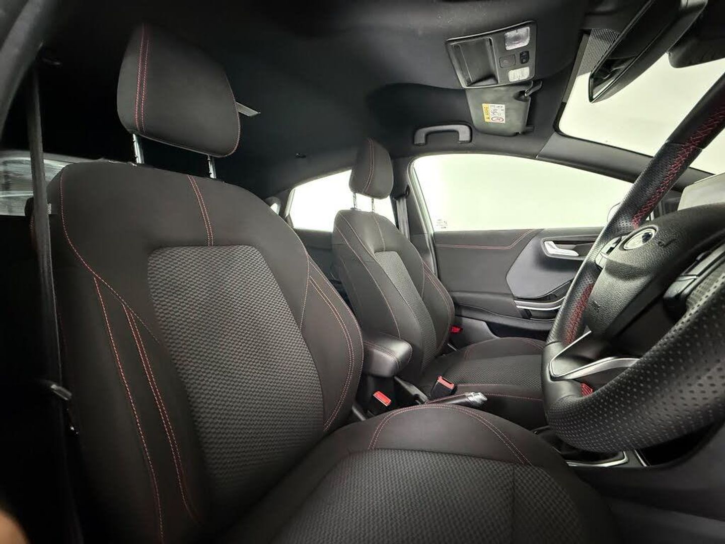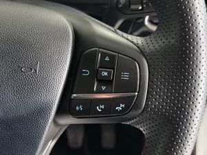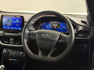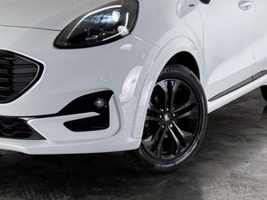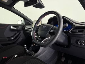 17in Alloy Wheels - 5x2 Spoke - Black Machined Finish, ABS - Anti-lock Braking System, Acoustic Laminated Windscreen, Active Grille Shutter, Automatic Dimming Rear View Mirror, Automatic Headlights with Rain-Sensing Wipers and Auto High Beam, Centre Console - Premium with Openable Stowage Area with USB Connectivity - 2 Cupholders and 12v Power Point, Courtesy Lights - Ambient LED Courtesy Lighting - Single Colour, Cruise Control with Intelligent Speed Assist, Drivers Manual 4-Way Seat Adjustment with Manual Lumbar Adjust, ESC - Electronic Stability Control and Hill Start Assist, Ecoboost Hybrid Tailgate Badge, Electric Windows - Front and Rear, Emergency Brake Warning - Automatic Hazard Warning Lights, First Aid Kit Strap, Floor Mats - Front and Rear, Ford MegaBox Extended Bootspace, Ford Power Starter Button, Ford SYNC 3 Navigation, Front Bumper - Unique ST-Line Sport Design - Body Colour, Front Fog Lights with Cornering lights and LED Rear Lamps, Front Seats - Sports Style, Full Digital 12.3in Instrument Cluster, Gear Knob - Aluminium, Handbrake - Black Sensico Trimmed with Stitching, Headliner - Deluxe, Instrument Panel - High Level, Intelligent Speed Assistance, Lane Keeping Aid with Lane Departure Warning, Large Rear Spoiler - Body Colour with Centre High Mounted Stop Light, Locking Wheel Nuts, Lower Bodyside Moulding - Body Colour, Manual Air Conditioning, Passengers Seat - 2-Way, Post Collision Braking, Power Steering, Power-Foldable Heated Door Mirrors with Puddle Lamps, Pre-Collision Assist with Autonomous Emergency Braking and Pedestrian-Cyclist Detection, Projector Headlamps with LED Daytime Running Lights, Puma Badge, Quickclear Heated Windscreen, Rear Bumper Body Colour - Diffuser, Rear Parking Sensors, Rear Seats - 2-Way Head Restraint Up-Down, Rear Seats - Second Row 60-40 Folding Seats, Remote Central-Double Locking, Restrain Device Pack, ST-Line Badge, ST-Line Body Styling Kit, ST-Line Flat-Bottomed Leather Steering Wheel with Unique Red Stitching, Selectable Driving Modes - Normal - Eco - Sport - Slippery and Trail, Soft-feel Gearshift Boot with Red Stitching, Speed Limiter, Sports Suspension, Tailgate - Manual, Thatcham Alarm, Traction Control and Emergency Braking Assistance, Trip-Fuel Computer, Tyre Inflation Kit, Tyre Pressure Monitoring System - TPMS, Privacy Glass, Cloth - Black with Red Stitching