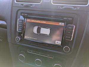 'Lights On' Reminder warning buzzer, Bluetooth Telephone preparation, Brake pad wear indicator warning light, Cruise control, Exterior temperature gauge, Multifunction computer - Highline, PAS - speed related, Rev counter, Trip and service interval display, Ultrasonic front and rear optical and audible parking sensors, Warning buzzer and light for front seatbelts unfastened, Automatic illuminating hazard lights in sudden deceleration, Body colour bumpers, Body colour door handles, Body colour door mirrors with integral indicators, Chrome trimmed radiator grille louvre inserts, Electric front windows, Electric rear windows, Electrically adjustable and heated door mirrors, Green tinted heat insulating glass, Heated rear window, Range adjustable headlights, Rear windscreen washer and wiper with interval delay, Twin exhaust tailpipe, Windscreen wipers/ intermittent wipe + 4 position delay, 12V socket in luggage compartment, 3 rear headrests, 60/40 split folding rear seat, Bag hook in luggage compartment, Boot lashing points, Courtesy light delay, Cover for storage compartment in centre, Dust/pollen filter, Front centre armrest with storage box and rear air vents, Front comfort seats with height/lumbar adjust, Front cupholders x 2, Grab handles, Height/reach adjust steering wheel, Illuminated vanity mirrors, Independent front and rear reading lights in chrome surround, Isofix preparation for 2 rear child seats, Leather steering wheel/gearknob/handbrake grip, Load through provision, Lockable, illuminated, cooled glovebox, Luggage compartment cover, Luggage compartment lighting, Multi function steering wheel, Rear cupholder, Seatback storage, Storage box in luggage compartment, Storage compartment in roof console with cover, Storage compartments in doors, White adjustable panel illumination, Convenience Pack - Golf, Smoking pack - Golf, 3 point height adj front seatbelts + pretensioners, 3 rear 3 point seatbelts, ABS, Auto hold function, CBA, Door open warning reflectors, Driver/Front Passenger airbags, Driver/Passenger whiplash optimised head restraints, Drivers knee airbag, ESP with EDL + ASR, Front and rear curtain airbags, Front passenger airbag deactivation, Front side airbags, Hydraulic Brake Assist (HBA), Two tone horn, Alarm with interior protection, Electronic engine immobiliser, Remote central locking with 2 remote folding keys, Speed sensitive auto door locking (can be switched off), Chrome plated instrument surrounds, Chrome-plated light switch surround, Pyramid black decorative inserts, Steel space saver spare wheel