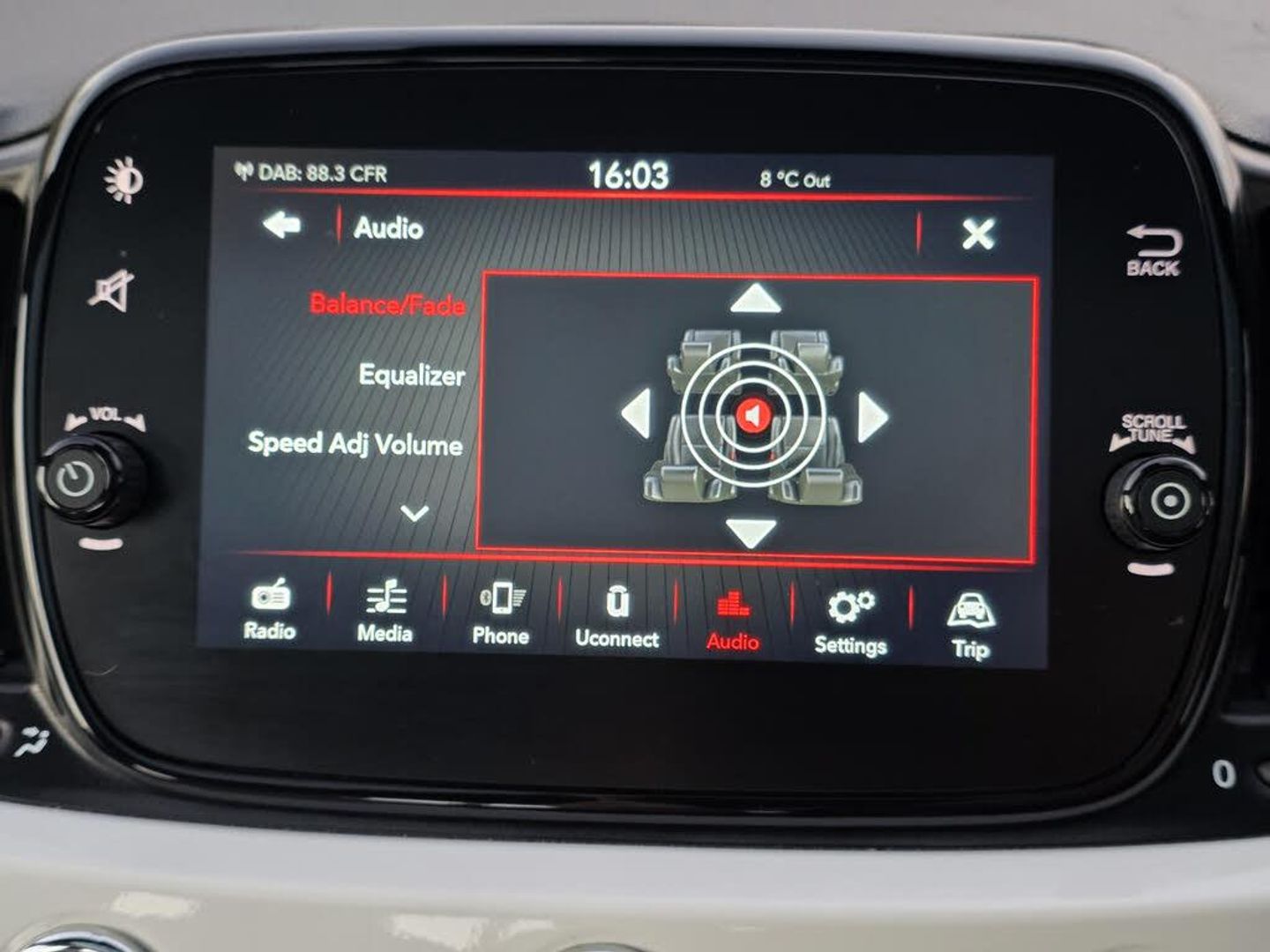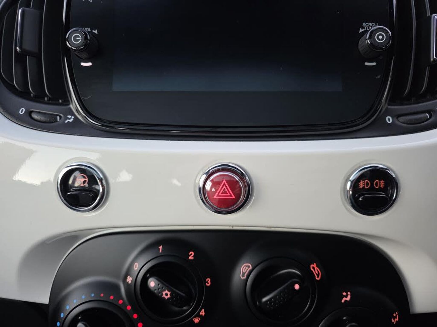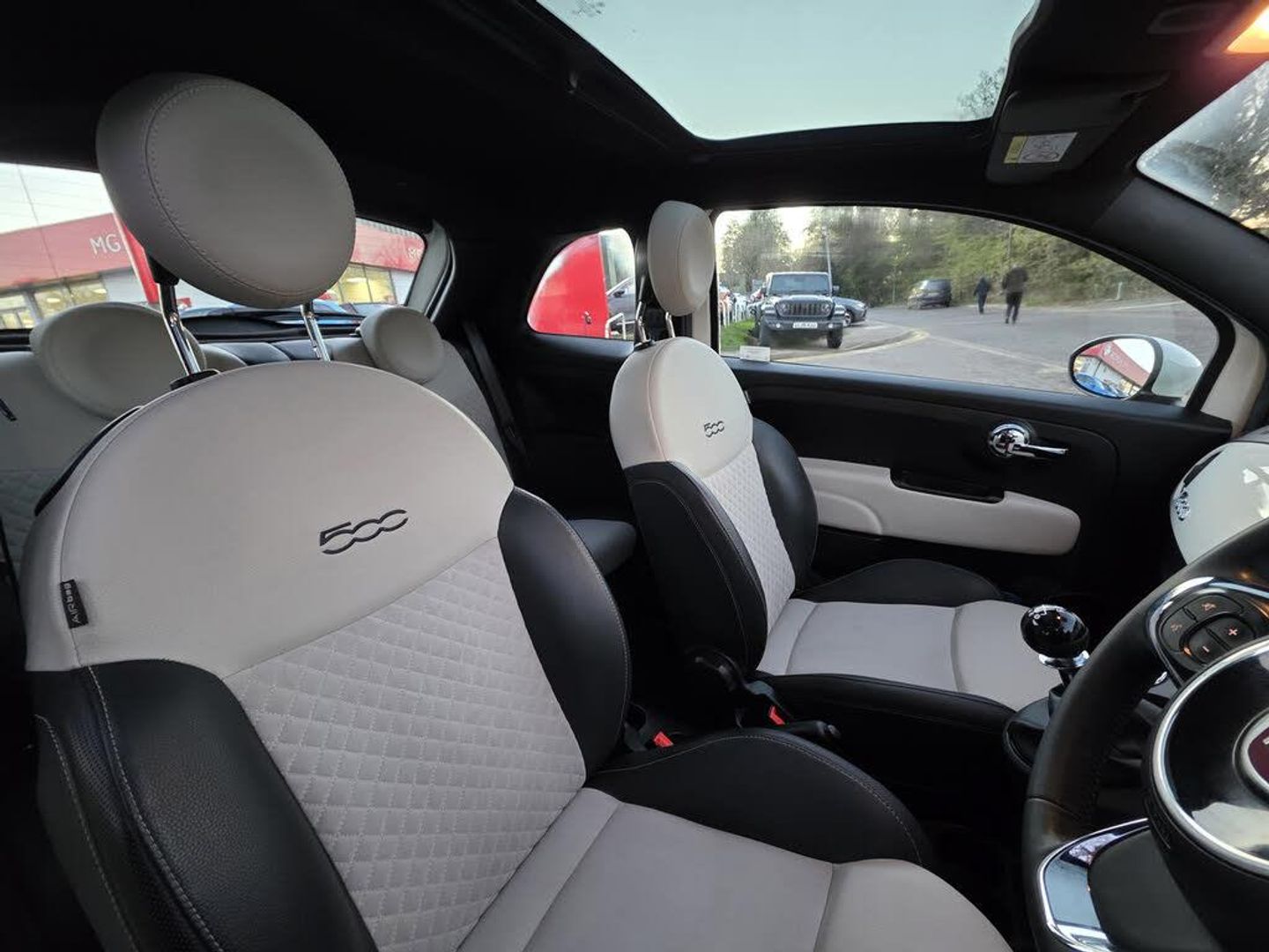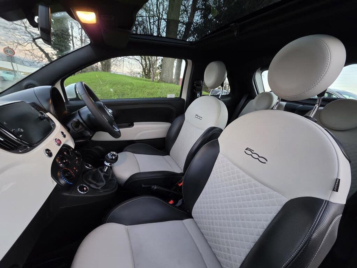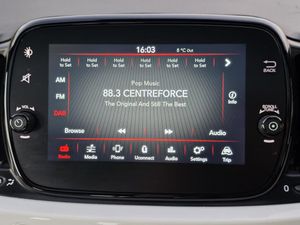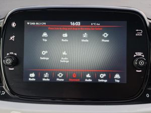 Apple car play/Android Auto, Cruise control, E-call, External temperature gauge, Power assist steering, Rear parking sensor, Speed limiter, Stop/start system, Trip computer, 4 speakers, 7" HD Touchscreen Radio, Bluetooth, USB and DAB, Rear speakers, 3rd brake light, Auto headlights, Body colour bumpers, Body coloured electrically adjustable door mirrors, Chrome plated exterior door handles, Dolcevita badge on fender, Dusk and rain sensors, Electric front windows, Fixed glass sunroof with sunblind, Front fog lights, Halogen headlamps, Heat insulated glass, Heated rear windows with wash wipe, LED daytime running lights, Rear side wing doors, Rear wiper, 1 passenger grab handle, 2 seat bench in second row, 50/50 split folding rear seats with height adjustable rear headrests, Air conditioning, Auxilliary 12V power socket, Chrome kit, Front headrests, Height adjustable drivers seat, Height adjustable steering wheel, Isofix child seat preparation, Single front passenger seat, Techno leather steering wheel with audio controls, 7 airbags - Driver, passenger, side, window and drivers knee airbags, ABS/EBD, ESC + ASR/MSR + HBA + Hill holder, Passenger airbag deactivation system, Traction control, Tyre pressure monitoring system, Automatic door locking, Immobiliser, Locking fuel filler cap, Remote central locking, 15" Alloy wheels