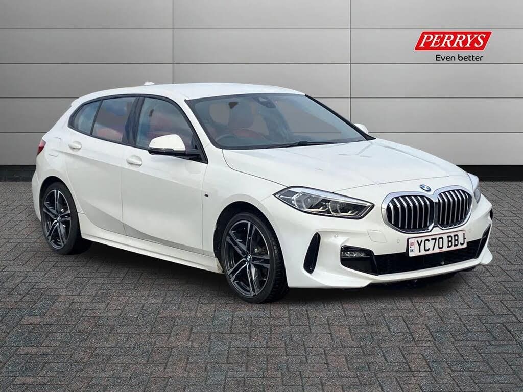 Active guard plus,Attentiveness assist,BMW Online services,BMW Teleservices,Check Control warning system for monitoring of lights and door/luggage compartment open warning,Connected eDrive Services,Eco pro mode,Electric power steering with Servotronic steering optimised at all speed ranges,Integrated owners handbook,Oil sensor for level and grade,On board computer,Optimum shift indicator,Personal Profile,Pull away assistant,Speed limiter,Aluminium lightweight construction,Anti roll bar front and rear,Balancer shaft,Double VANOS,Drive Performance Control,Electronic differential lock,High precision injection,M sports suspension + self levelling,Petrol Particulate Filter,VALVETRONIC engine management,Bluetooth audio streaming,DAB Digital radio,Auto dimming rear view mirror,Automatic headlight beam throw control,Body colour door handles,Body colour mirror caps,Chrome 'M' logo side designation,Chrome exhaust tailpipe in single, round (Exhaust tailpipe, stainless steel - single, round),Chrome kidney grille frame with Satin Aluminium struts,Direction indicator side lights in exterior mirrors,Electric folding and anti dazzle exterior mirrors,Fading support,Follow me home headlights,Front and rear electric windows with open and close fingertip control, anti trap facility and comfort closing,Front door sill finishers in black plastic with BMW designation,Green tinted heat protection glazing,Heated, electrically adjustable exterior mirror aspheric on driver side, convex on passenger side,High gloss shadow line exterior trim,High gloss shadowline window frame, Recess cover mirror frames and B/C pillar embelisher trim,High level third brake light,LED daytime running lights,LED eyebrow turn indicators,LED front fog lights,Lightweight engineering,Matt black air guide grilles,Model designation on right side of tailgate,Nearside reverse light in rear light cluster,Preparation for high beam assistant,Rain sensor including auto headlights activation,Rear fog lights,Rear window wiper,Shark fin antenna,Visible VIN plate,Welcome lighting,Windscreen wipers with integrated washing jets,12V power socket in centre console,2 cupholders in front centre console,3 rear seat head restraints,3 spoke M sports design leather steering wheel finished in nappa leather with specific M badge,Anthracite headlining,Anthracite Velour floor mats,Child seat ISOFIX attachment for two outer rear seats and front passenger seat with anchorage points,Conditioned based service,Dakota leather upholstery with perforation and contrast stitching,Driver and front passenger seat heating,Driver side folding compartment in instrument panel,Folding rear clothes hook,Folding rear seats,Four grab handles integrated in roof lining,Front and rear door pockets,Front and rear side armrest integrated into door trim,Front armrest foldable with integrated storage compartment,Front sports seats with electric side bolster adjustment,Glove compartment,Height adjustable front head restraints,Manual adjust steering wheel,Multi-function controls for steering wheel,Rear seat backrest with manual 60:40 split folding with 3 top tether clips integrated on rear of seat panels,Storage compartment in centre console,Sun visors with vanity mirrors and insert tab,Two zone automatic air conditioning,Connected pack professional - 1 Series,Extended Lighting pack - 1 Series,Extended storage pack - 1 Series,Interior lights pack - 1 Series,Luggage compartment pack - 1 Series,M Sport exterior styling aerodynamics pack - 1 Series,2 tone horn,3 point seatbelts on all seats, front pyrotechnic belt tensioners, stopper and belt force limiters, rear coded belt buckles,Airbags - Front driver and passenger, front and rear head, front side, curtain head protection,Anti lock braking system (ABS) with brake assist,BMW emergency call,Brake drying,Braking readiness,Crash sensor activating central locking release, hazard warning lights, fuel cut off, interior lighting + activation of safety battery terminal clamp,Driver and front passenger seat belt security check,Dynamic stability control + (DSC+),Dynamic Traction Control - DTC,Electrically operated hand brake,Front and rear disc brakes,Front passenger manual airbag deactivation,Rear child proof door locks,Seatbelt warning,Side impact protection,Tyre pressure monitoring system,Warning triangle and first aid kit,Automatic drive away locking facility,Central locking switch for all doors, fuel filler cap and luggage compartment,Deadlocking function system to all doors,Locking wheel bolts,Remote control with integrated key with High-gloss Black inlay and M designation and 1 button for open/ close lock, window, open luggage compartment,Start/stop button with comfort go keyless engine start and auto start stop deactivation button,Thatcham Cat.1 alarm and immobiliser,Contrast stitching on instrument panel,Reduced rolling resistance tyres,Alpine White,Perforated Dakota Leather - Magma Red with Grey Highlight