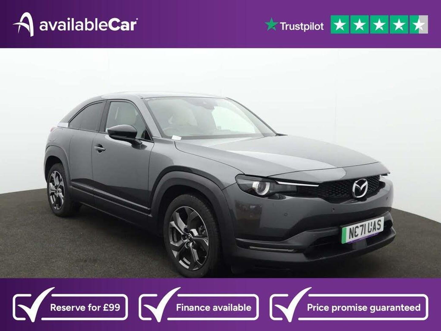 18in Alloy Wheels - Bright,3x 3-Point Rear Seat Belts,7in Colour Touch Screen for Climate Control Settings,8.8in TFT Colour Centre Display with Mazda Connect Infotainment,ABS - Anti Lock Braking System,AM-FM-DAB Radio - MP3 with 8 Speakers,Air Conditioning - Climate Control,Airbags - Driver,Airbags - Rear,Apple CarPlay and Android Auto,Auto Dimming Drivers Door Mirror,Automated High-Beam Assist,Blind Spot Monitoring with Rear Cross Traffic Alert,Bumpers - Body Coloured,Chrome Glove Box Handle,Chrome Start Button,DC Socket for Rapid Charging up to 50KW,Digital Instrument Cluster,Door Mirrors - Electrically Adjustable - Heated - Power Folding with Integrated Indicator Lights - Painted Black,Driver Attention Alert - DAA,Drivers Knee Airbags,Dusk Sensing Automatic Headlights,ESP - Electronic Stability Control,Electric Windows - Front,Electronic Parking Brake with Auto Hold Function and Auto-Disengage Function,Emergency Lane Keeping with Blind Spot Assist,Engine Start-Stop Button,Frameless Auto Dimming Rear-View Mirror,Front - Side and Curtain Airbags,Front Head Restraints,Front Passenger Airbag,Front Passenger Seat - Manual Height Adjustment,Front Smart Brake Support with Pedestrian Detection,Front and Rear Centre Armrest,G-Vectoring Control Plus - GVC Plus,Head Restraints - Rear,Headlights - LED,Hill Hold Assist,ISOFIX Child Seat Anchorage for Outer Rear Seats,Instrument Panel 7in TFT Colour Driver Display,Integrated Bluetooth,Internal Combustion Engine Sound Emulator,LED 3rd Brake Light,LED Daytime Running Lights,LED Indicator Lights,LED Rear Combination Lights,Lane Departure Warning System,Lane Keep Assist System,Leather-Wrapped Steering Wheel and Shift Lever with Telescopic and Tilt Adjustment,Luggage Compartment - Tonneau Cover,Mazda Navigation System,Mazda Radar Cruise Control with Intelligent Speed Assist,Mobile Phone App Interface,Multimedia Commander including Separate Volume Dial,OEM Sound System,Parking Sensors - Front and Rear,Power Steering,Privacy Glass - Rear,Radiator Grille - Black,Rain-Sensing Front Wipers,Rear Wiper,Remote Central Locking with Deadlocking and Automatic Door Lock when Driving,Reverse Parking Aid,Reversing Camera,Satin Trim on D Pillar,Seats - 60-40 Split Folding Rear,Seats - Driver Electric 8-Way Power Adjustment with Memory,Seats - Drivers Power Lumbar Adjustment,Seats - Front Heated,Service Indicator,Smart Brake Support with Turn Across Traffic,Smart Keyless Entry,Steering Wheel - Paddle Shift,Steering Wheel Chrome Centre Bezel,Steering Wheel Mounted Audio and Bluetooth Controls,TCS - Traction Control System,Thatcham Accredited Alarm and Immobiliser,Trip Computer,Type 2 Mode 2 AC Charging Via 3-Point Plug,Type 2 for Mode 3 AC Charging Via Home or Public Charge Points,Tyre Pressure Monitoring System,Tyre Repair Kit,USB - iPod Connectivity,USB and 12v Outlet,Window Projection Colour Active Driving Display with Traffic Sign Recognition,Window Trim - Piano Black,e-Call with GPS