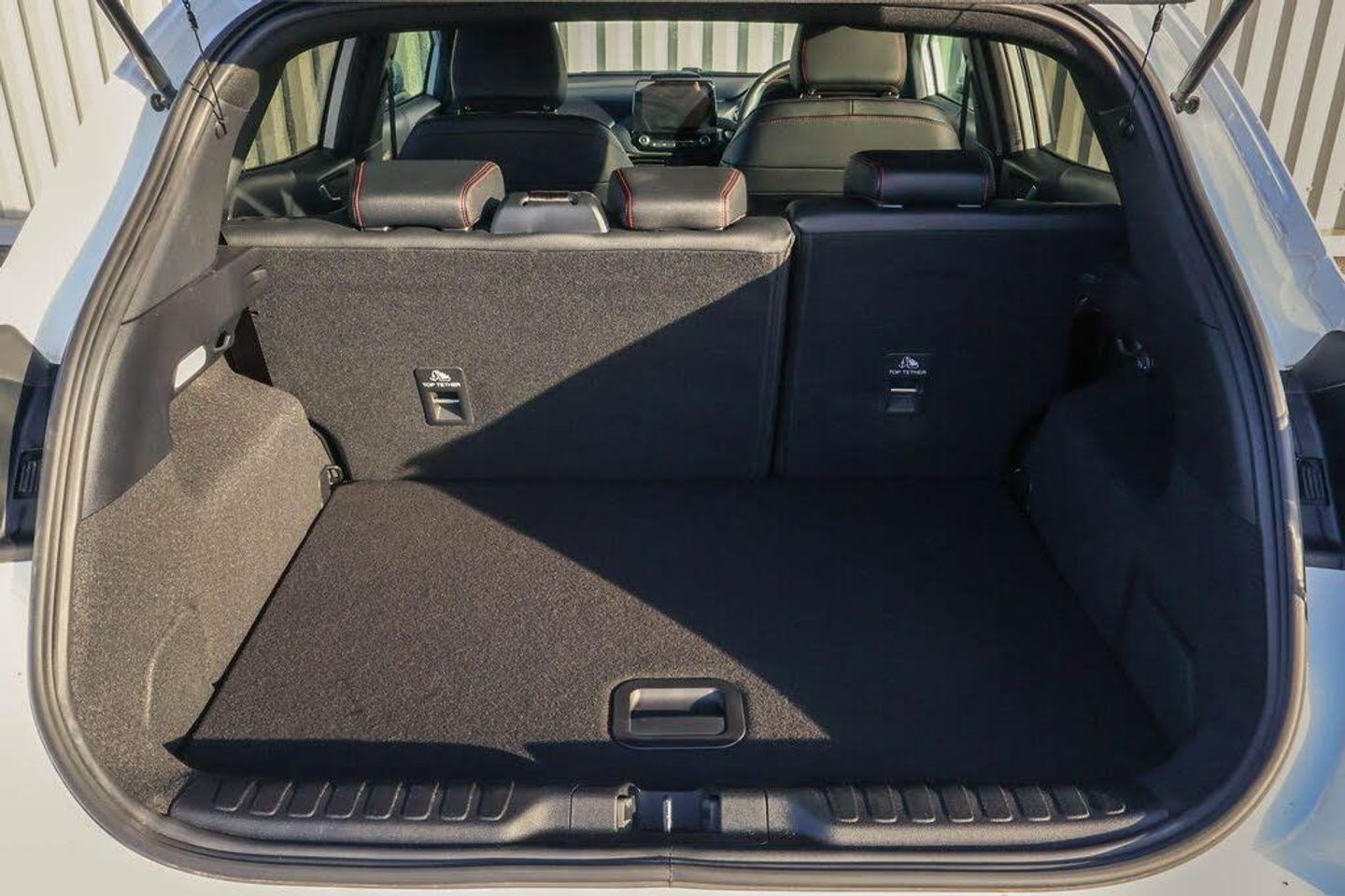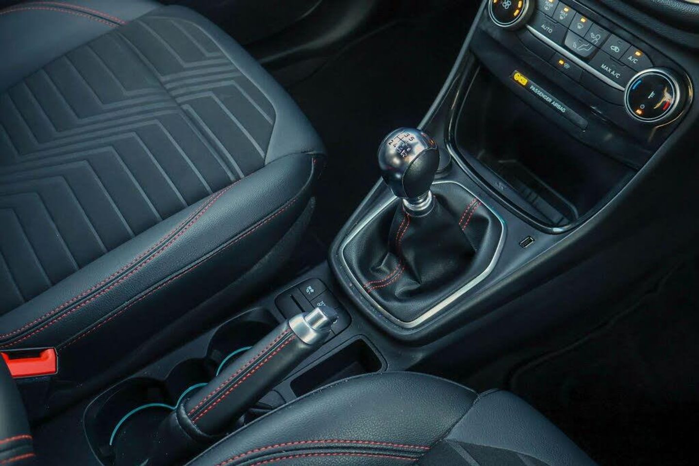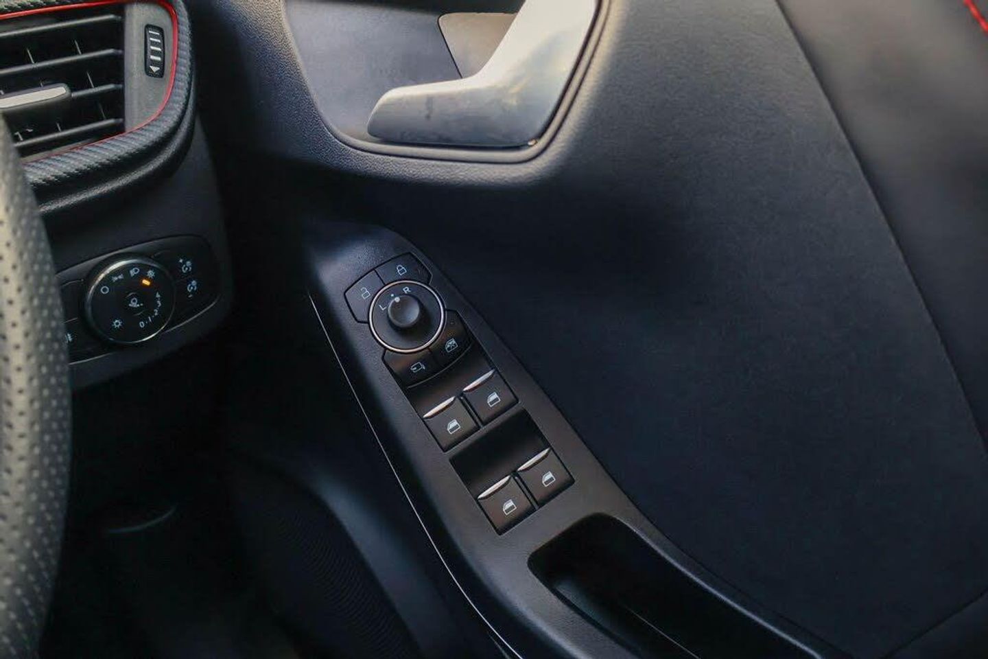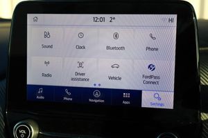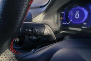 Driver impairment monitor, Emergency call service, Ford easy fuel, Full digital 12.3" instrument cluster, Lane keeping aid with lane departure warning, Power assist steering, Power start button, Rear parking sensor, Selectable drive modes(Normal, Eco, Sport, Slippery and Trail), Speed sign recognition, Automatic headlights with auto high beam, Automatic rain sensing wipers, Front fog lamps, LED daytime running lights, LED rear lamps, Power foldable heated door mirrors with puddle lamps, Privacy glass to side rear windows and tailgate glass, Quickclear heated windscreen, Rear side wing doors, Rear wiper, ST-Line body styling kit with unique grille, Third brake light, 3 seat bench in 2nd row, Centre console with armrest and stowage, Ford megabox extended bootspace, Front and rear head restraints, Front floor mats, Manual 4 way driver seat adjust with lumbar adjustment, Manual 4 way passenger seat with lumbar seat adjustment, Sensico partial premium upholstery, Single front passenger seat, ST-Line flat bottomed sensico leather steering wheel with leather handbrake and aluminium gear knob, Wireless charging pad with electronic air temperature control (EATC), Thatcham alarm, Partial Premium Sensico - Black with Red Stitching
