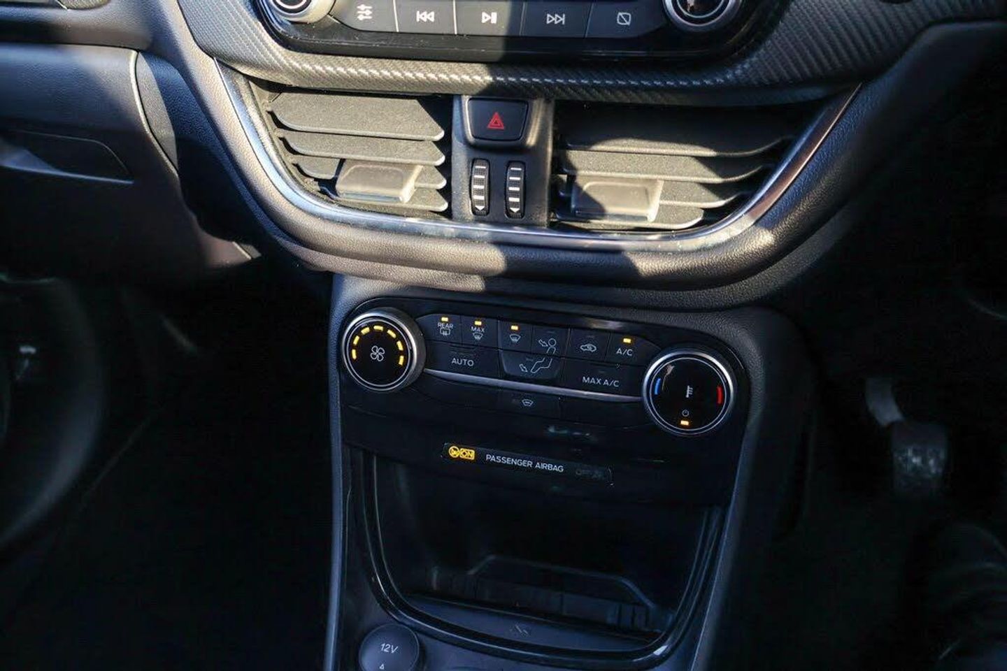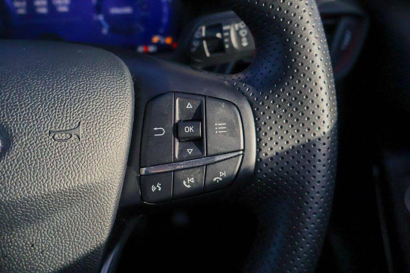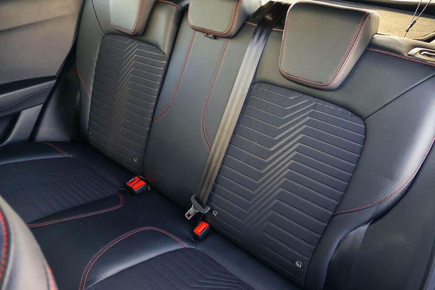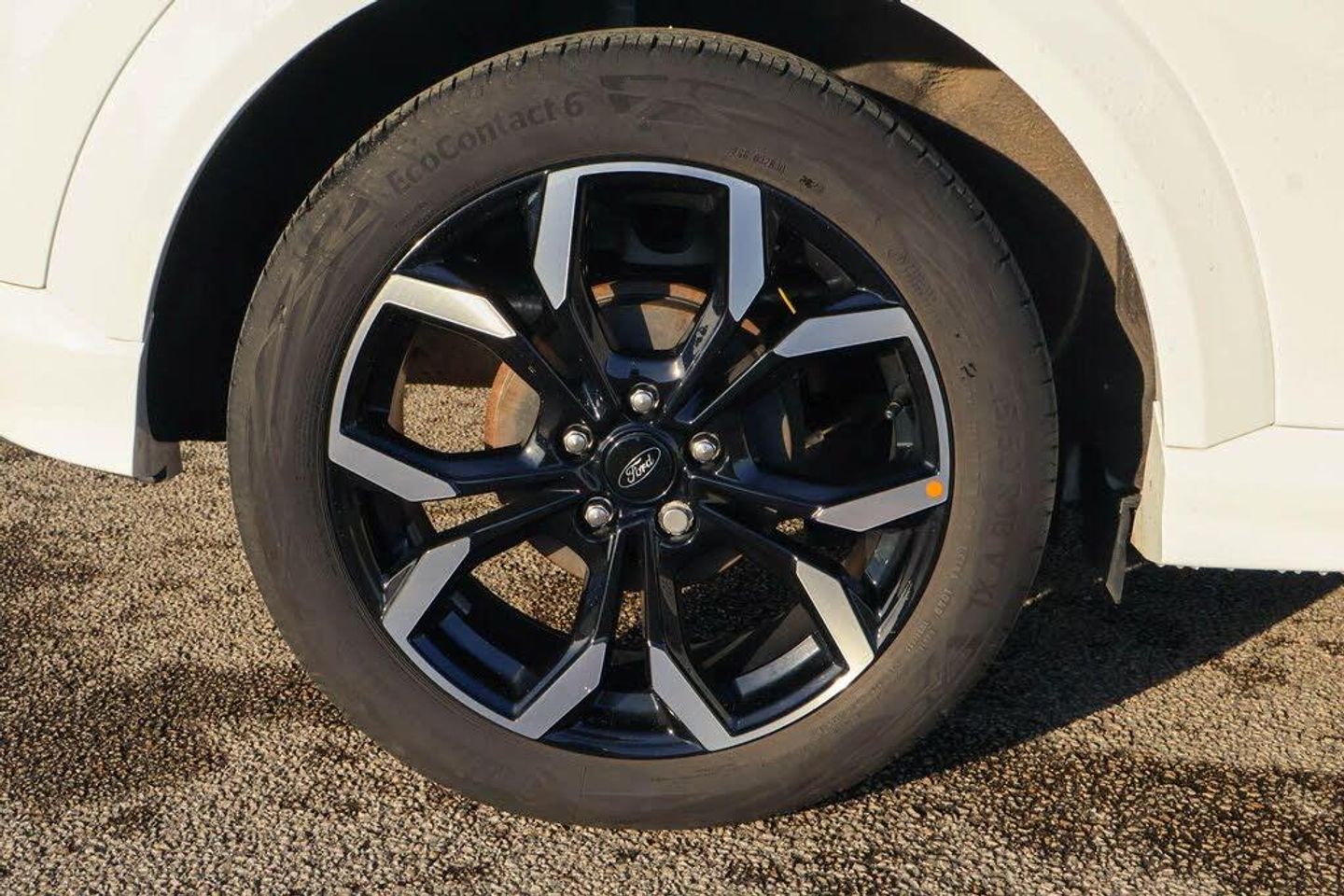 Driver impairment monitor, Emergency call service, Ford easy fuel, Full digital 12.3" instrument cluster, Lane keeping aid with lane departure warning, Power assist steering, Power start button, Rear parking sensor, Selectable drive modes(Normal, Eco, Sport, Slippery and Trail), Speed sign recognition, Automatic headlights with auto high beam, Automatic rain sensing wipers, Front fog lamps, LED daytime running lights, LED rear lamps, Power foldable heated door mirrors with puddle lamps, Privacy glass to side rear windows and tailgate glass, Quickclear heated windscreen, Rear side wing doors, Rear wiper, ST-Line body styling kit with unique grille, Third brake light, 3 seat bench in 2nd row, Centre console with armrest and stowage, Ford megabox extended bootspace, Front and rear head restraints, Front floor mats, Manual 4 way driver seat adjust with lumbar adjustment, Manual 4 way passenger seat with lumbar seat adjustment, Sensico partial premium upholstery, Single front passenger seat, ST-Line flat bottomed sensico leather steering wheel with leather handbrake and aluminium gear knob, Wireless charging pad with electronic air temperature control (EATC), Thatcham alarm, Partial Premium Sensico - Black with Red Stitching