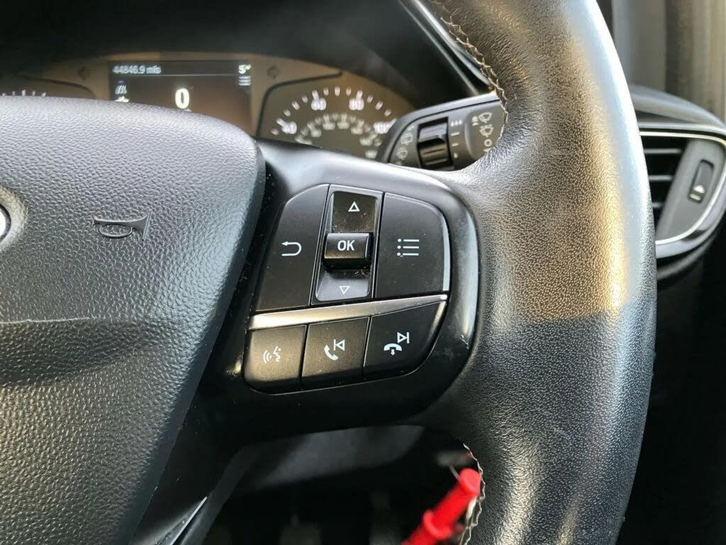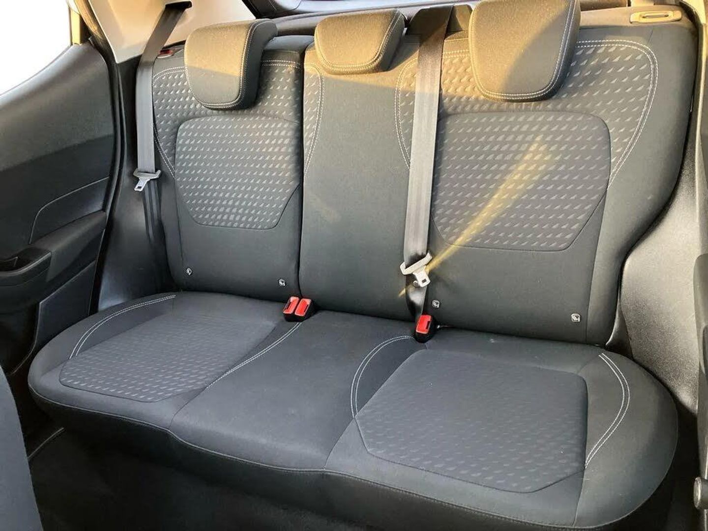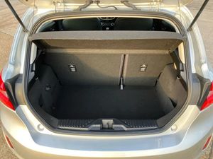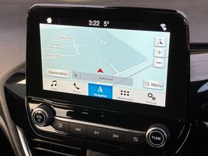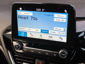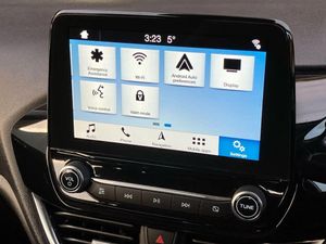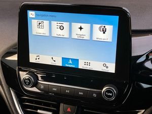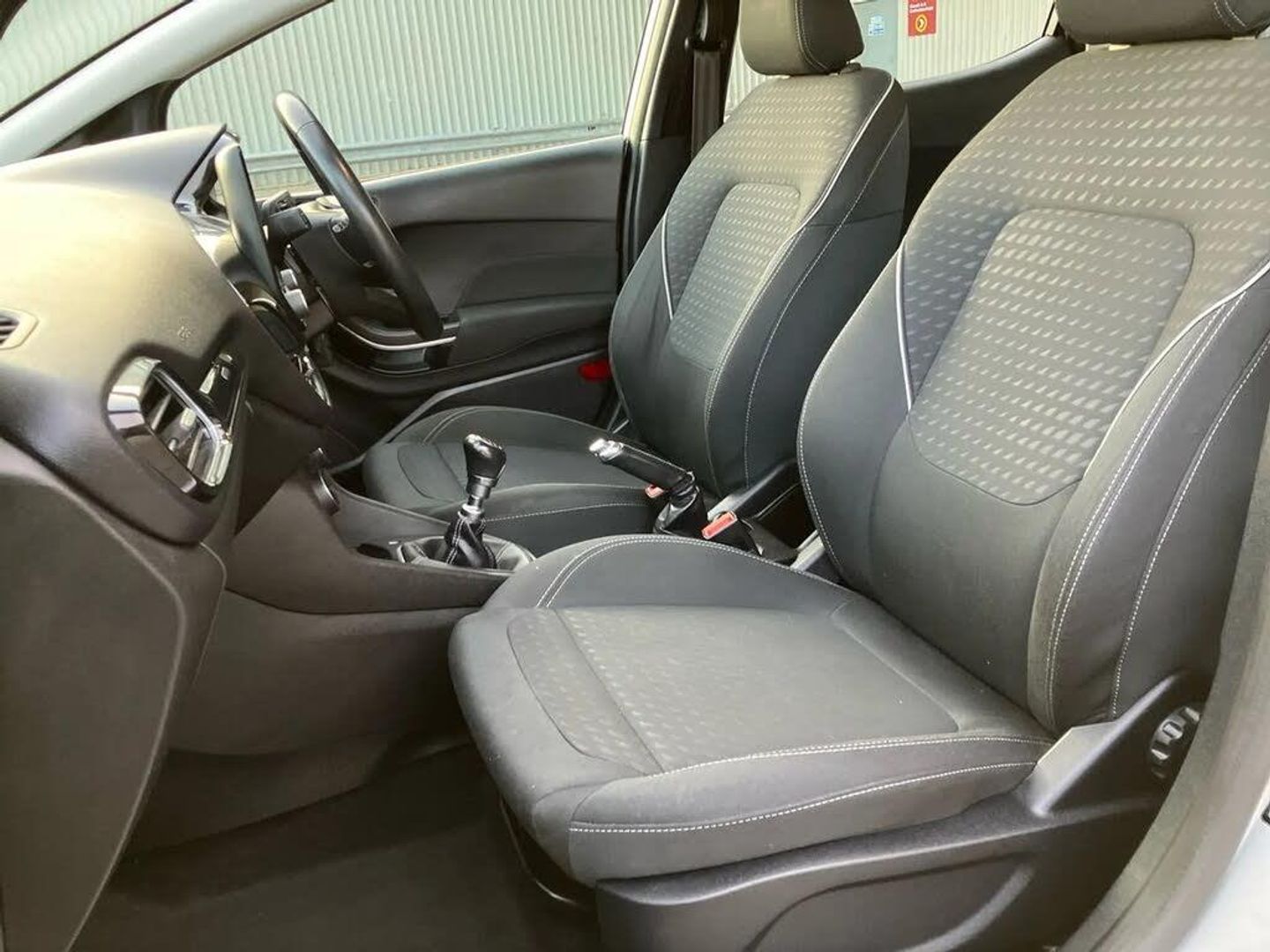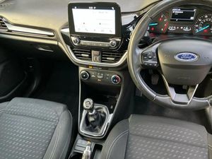 Bluetooth system,Electric power steering,Ford easy fuel,Trip computer,2 USB ports,Auxiliary input socket,DAB Digital radio,Steering wheel mounted controls,Automatic headlights,Body colour bumpers,Body colour door handles,Body colour electric adjustable heated door mirrors with integral indicators,Body colour rear spoiler,Chrome beltline trim,Cornering front fog lights,Electric front windows/one touch facility,Halogen projector style headlights with static cornering lights + LED daytime running lights,Quickclear heated windscreen,Rear wiper,Tinted glass,Upper front grille chrome surround,12V Accessory socket in centre console,3 spoke leather trimmed steering wheel with audio control,60/40 split folding rear seat,Adjustable head restraints,Boot carpet,Chrome inner door handles,Cloth upholstery,Footwell illumination,Front map reading lights,Front seat and rear pockets,Height adjustable driver's seat,Illuminated glovebox,Leather gear knob,Leather trimmed handbrake handle,Load area light,Luxury woven headliner,Manual air conditioning,Overhead console with sunglasses holder,Pollen filter,Rake/reach adjustable steering wheel,Rear centre head restraint,NCAP Pack - Fiesta,3 point seatbelts on all rear seats,ABS+EBA,Curtain airbags,Driver and passenger airbags,Drivers knee airbag,Electronic stability control with hill start assist,Front passenger airbag deactivation,Front side airbags,Seatbelt warning,Tyre pressure monitoring system,MyKey system,Remote central locking & engine immobiliser,Thatcham Cat.1 alarm