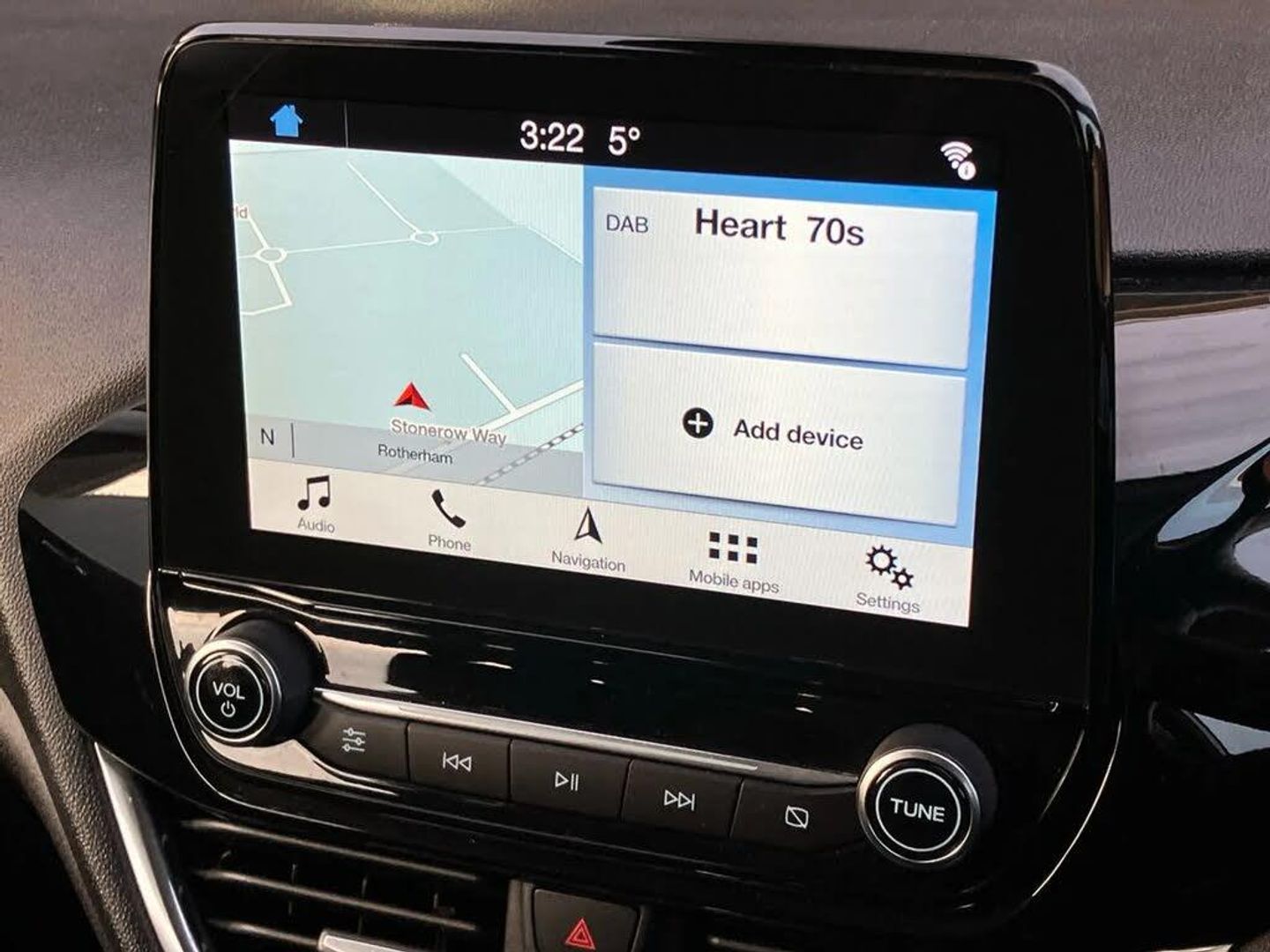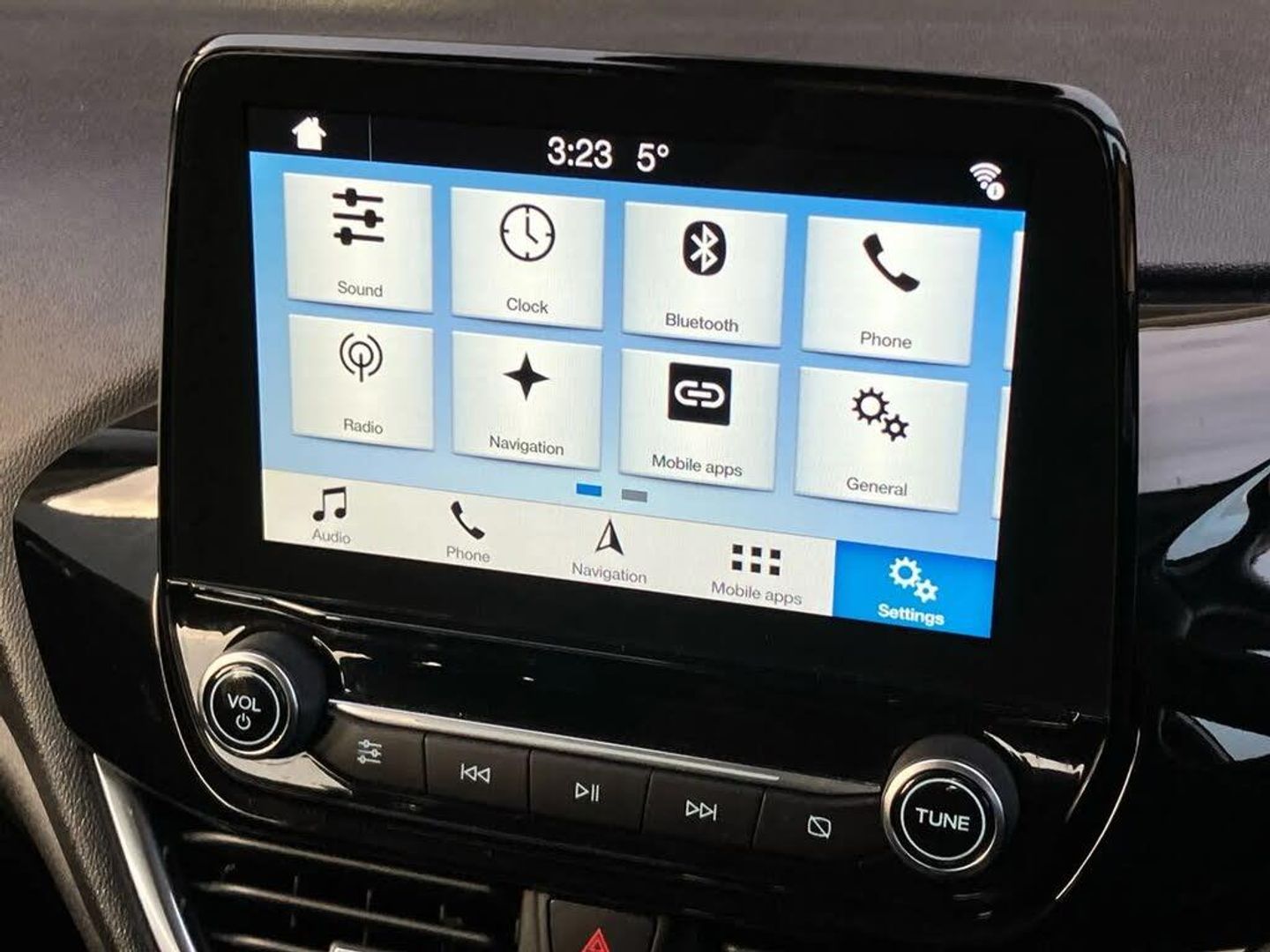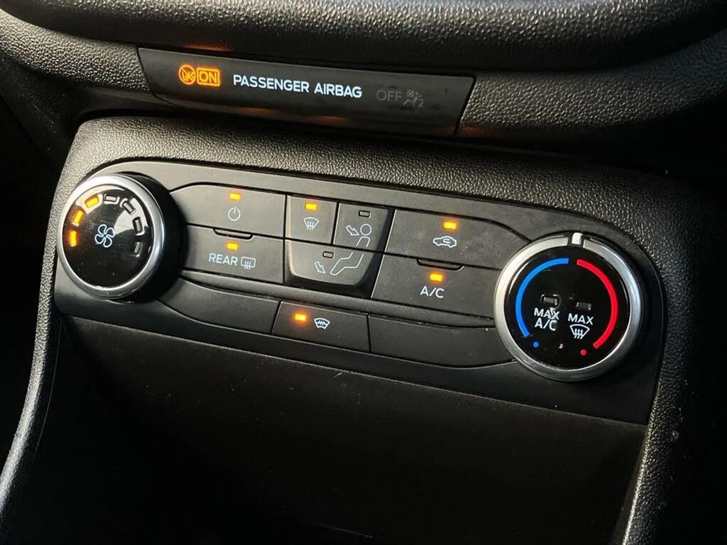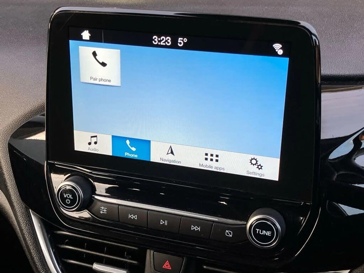 Bluetooth system,Electric power steering,Ford easy fuel,Trip computer,2 USB ports,Auxiliary input socket,DAB Digital radio,Steering wheel mounted controls,Automatic headlights,Body colour bumpers,Body colour door handles,Body colour electric adjustable heated door mirrors with integral indicators,Body colour rear spoiler,Chrome beltline trim,Cornering front fog lights,Electric front windows/one touch facility,Halogen projector style headlights with static cornering lights + LED daytime running lights,Quickclear heated windscreen,Rear wiper,Tinted glass,Upper front grille chrome surround,12V Accessory socket in centre console,3 spoke leather trimmed steering wheel with audio control,60/40 split folding rear seat,Adjustable head restraints,Boot carpet,Chrome inner door handles,Cloth upholstery,Footwell illumination,Front map reading lights,Front seat and rear pockets,Height adjustable driver's seat,Illuminated glovebox,Leather gear knob,Leather trimmed handbrake handle,Load area light,Luxury woven headliner,Manual air conditioning,Overhead console with sunglasses holder,Pollen filter,Rake/reach adjustable steering wheel,Rear centre head restraint,NCAP Pack - Fiesta,3 point seatbelts on all rear seats,ABS+EBA,Curtain airbags,Driver and passenger airbags,Drivers knee airbag,Electronic stability control with hill start assist,Front passenger airbag deactivation,Front side airbags,Seatbelt warning,Tyre pressure monitoring system,MyKey system,Remote central locking & engine immobiliser,Thatcham Cat.1 alarm