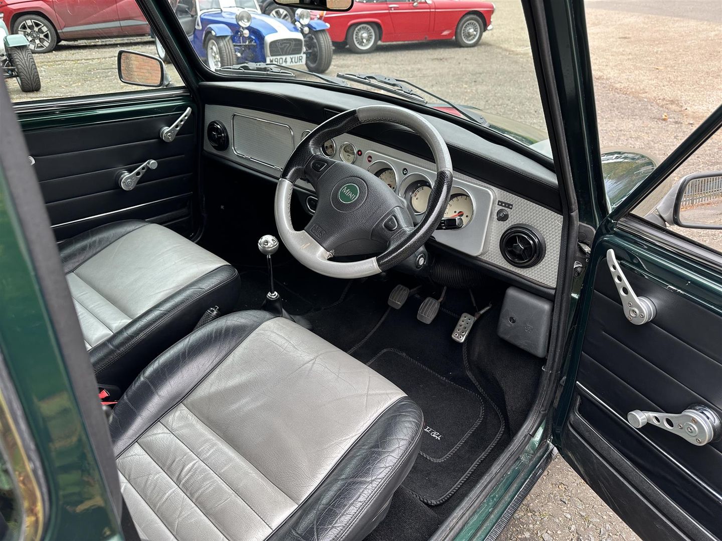 This Final Edition stands out with its distinctive 13" alloy wheels, a stunning black/silver leather interior, and a beautifully finished stainless steel dashboard - a rare combination that makes the cabin feel both vintage and premium. The deep pearlescent BRG paintwork adds a modern shimmer to a timeless colour, ensuring this Mini turns heads wherever it goes.