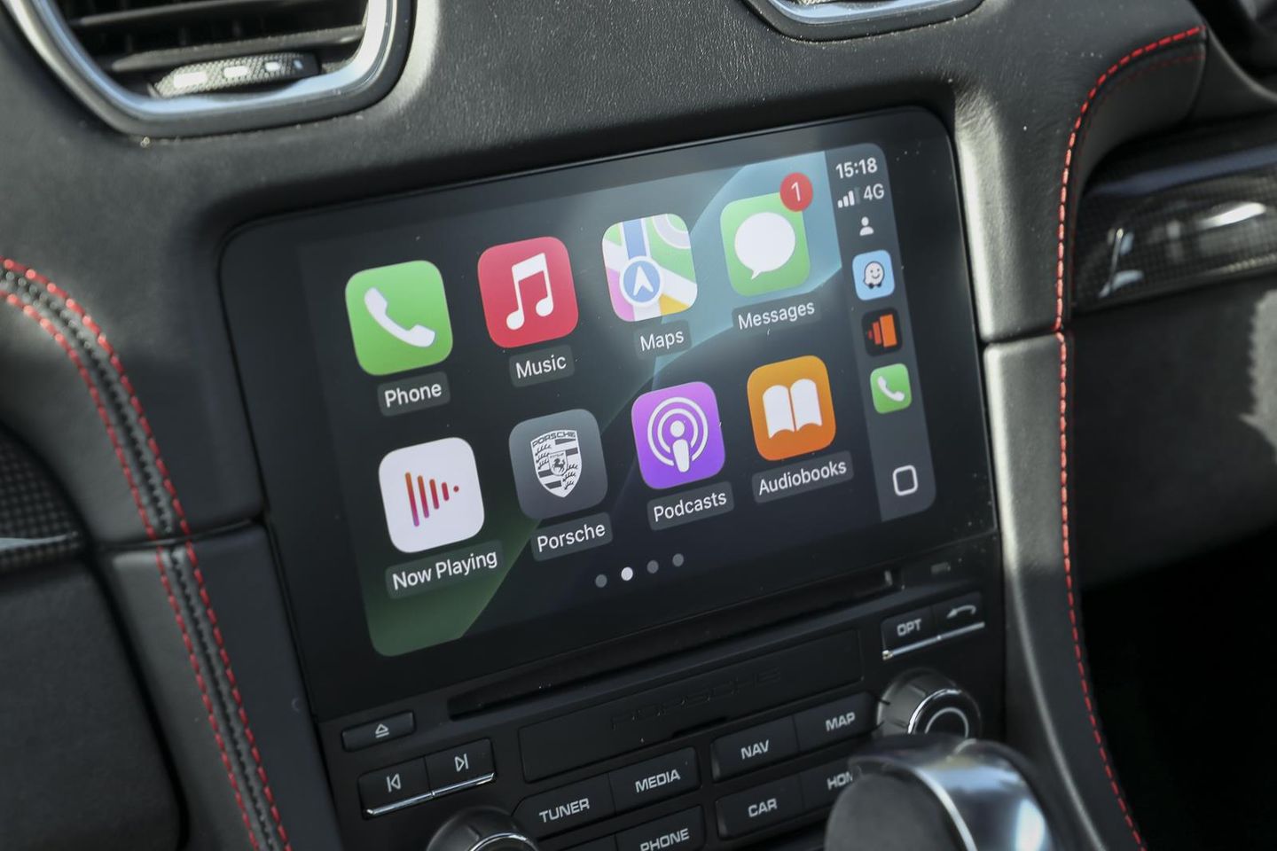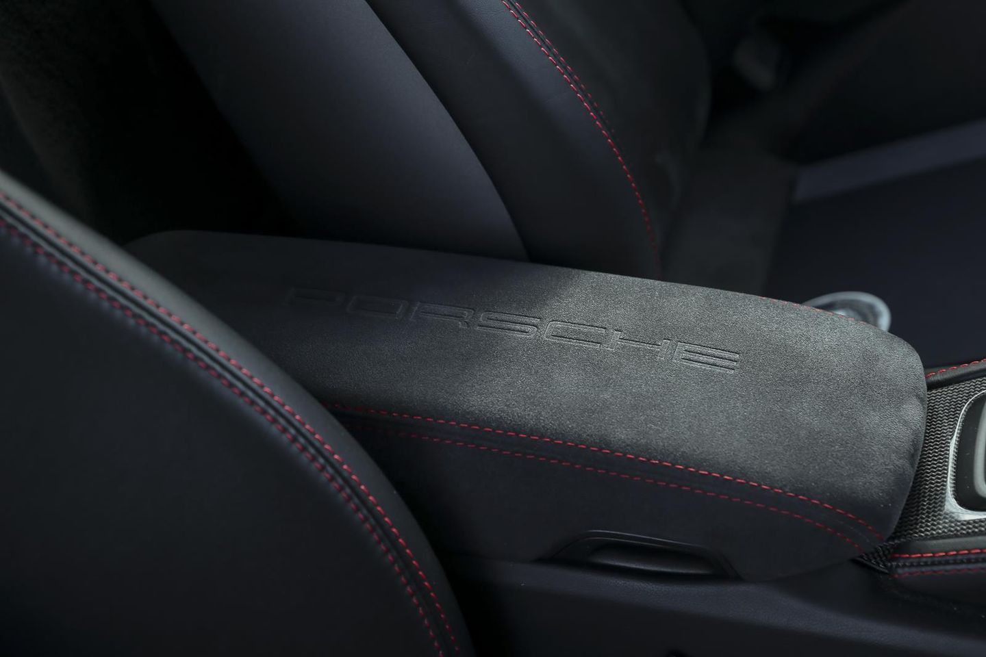 XLG Centre Armrest in Alcantara & Guards Red Stitching with PORSCHE lettering