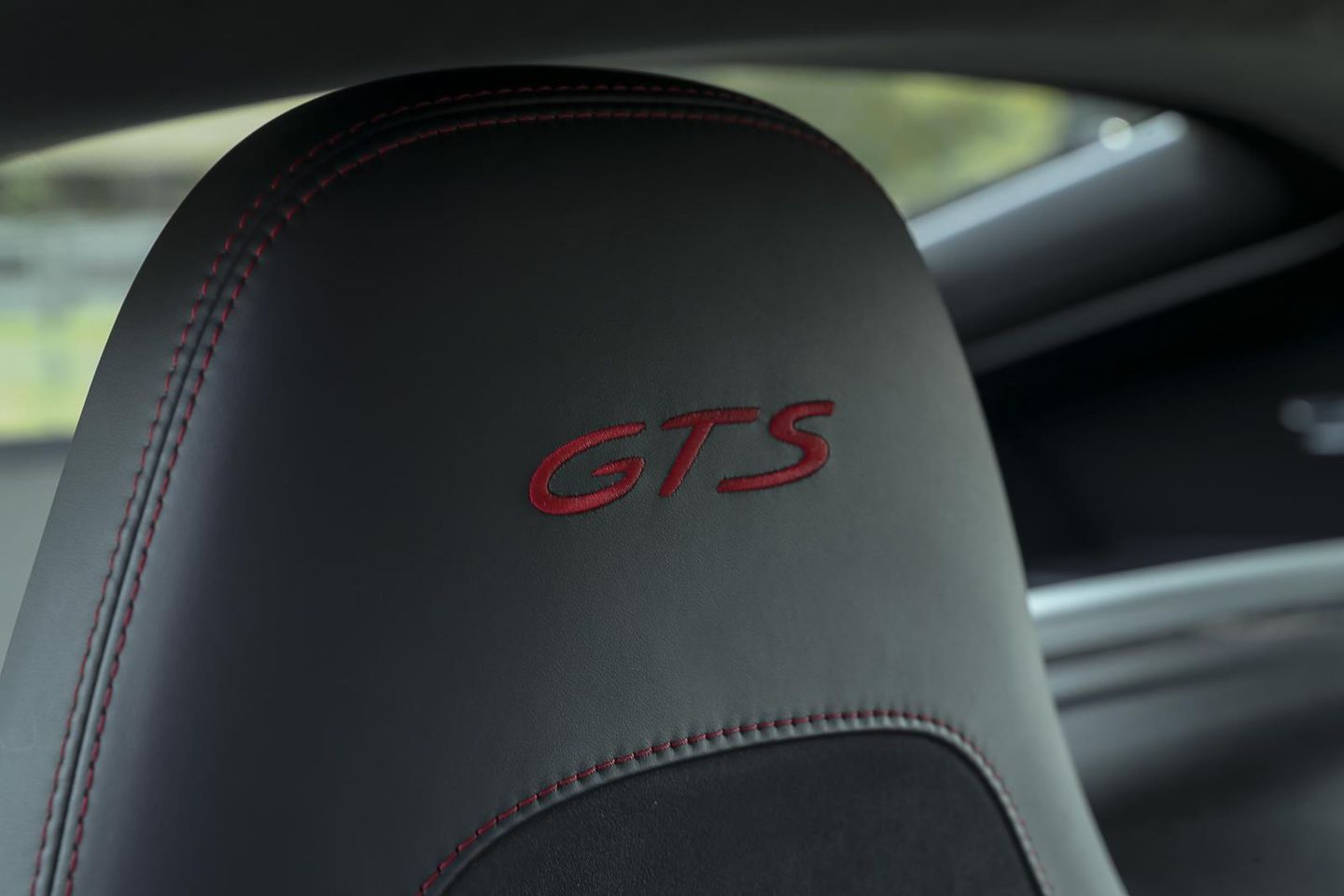 088 GTS Interior Package Extended Black Leather, Red Stitching, Alcantara, Carmine Red Stitched GTS Headrests