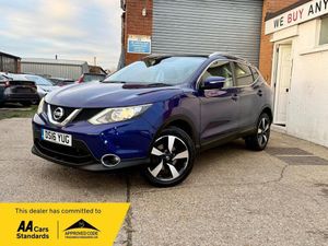 READY TO DRIVE AWAY*ADVISORIES ON MOT HAS BEEN RECTIFIED*This 2016 Nissan Qashqai dCi N Connecta is a fantastic example, having had only two owners from new. This popular family SUV boasts a 1.5 litre Euro 6 diesel engine, offering an impressive fuel economy of 74 miles per gallon. The N Connecta trim level comes well equipped, featuring a Smart Vision Pack with front and rear parking sensors, and a Tech Pack that includes a 360 degree camera for effortless manoeuvring. You'll also benefit from keyless entry via the Intelligent Key and dual zone climate control air conditioning to keep everyone comfortable.The highlights of this Qashqai demonstrate its value and efficiency. Its low CO2 emissions and low insurance group mean that running costs are kept to a minimum, making it a more economical choice compared to many other vehicles in its class. Combined with its excellent fuel economy, this Nissan Qashqai N Connecta is a sensible and well appointed option for everyday driving.-ULEZ+LONGMOT+FSH+IDEAL4FAMILY