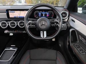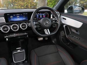 Manufacturer Approved Used, 12 Months' Mercedes-Benz Approved Used Car warranty when purchased from this branch, Balance of warranty, 10.25 inch touchscreen central media display, DYNAMIC SELECT with a choice of driving modes (ECO, Comfort, Sport and Individual), Hey Mercedes Voice activation, Smartphone integration with Apple CarPlay and Android auto, MBUX multimedia system, Artico man-made leather upholstery, Interior lighting - 64 colour Ambient lighting, Heated front seats, Active lane keeping assist, Parking pack with reversing camera - CLA, Blind spot assist, Keyless go comfort pack - CLA with easy pack tailgate, Mercedes me connect including emergency call system, accident recovery, breakdown and maintenance management, Wireless charging in the front centre console, Light and sight pack - CLA, Comfort suspension with ride height lowering, Mercedes Benz sound system (100 W) with 6 speakers, AMG body styling with AMG front apron and rear apron and visible exhaust tailpipe in chrome trim elements, LED high performance headlamps with integrated LED daytime running lights and adaptive highbeam assist, Exhaust system with 2 Visible tailpipe trim elements and rear apron with trim in chrome, Radiator grille with Mercedes-Benz pattern in chrome with central Mercedes star and single louvre with chrome inserts, 3 twin spoke flattened multifunction steering wheel in nappa leather - horizontal twin spoke in high gloss black, vertical twin spoke in silver chrome, Brushed stainless steel sports pedals with rubber studs, Sport seats with fixed head restraints, Light aluminium with longitudinal grain interior trim, 18" AMG 5 twin spoke light alloy wheels painted in termolite grey with high sheen finish