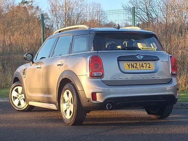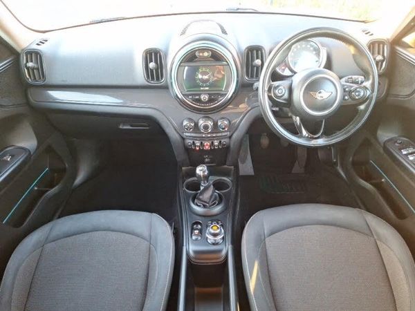 Brake pad wear indicator warning light, Apple CarPlay preparation, DTC - Dynamic traction control, Servotronic speed sensitive power steering, Electronic differential lock, Auxiliary input socket, DAB digital radio module, MP3 compatible radio/single CD player, Radio visual boost, Anti dazzle rear view mirror, Chrome exhaust tailpipe, Electric front windows + one touch + anti-pinch, Electrically adjustable door mirrors, Green tinted glass, Heated door mirrors/heated windscreen washers, Interior lights pack - Countryman, MINI Excitement Pack - Countryman, ABS, Cornering brake control (CBC), DSC - Dynamic Stability Control, Electronic brake force distribution, Electronic parking brake, Hill start assist, Tyre pressure warning, Thatcham category 1 alarm + immobiliser, Keyless Start