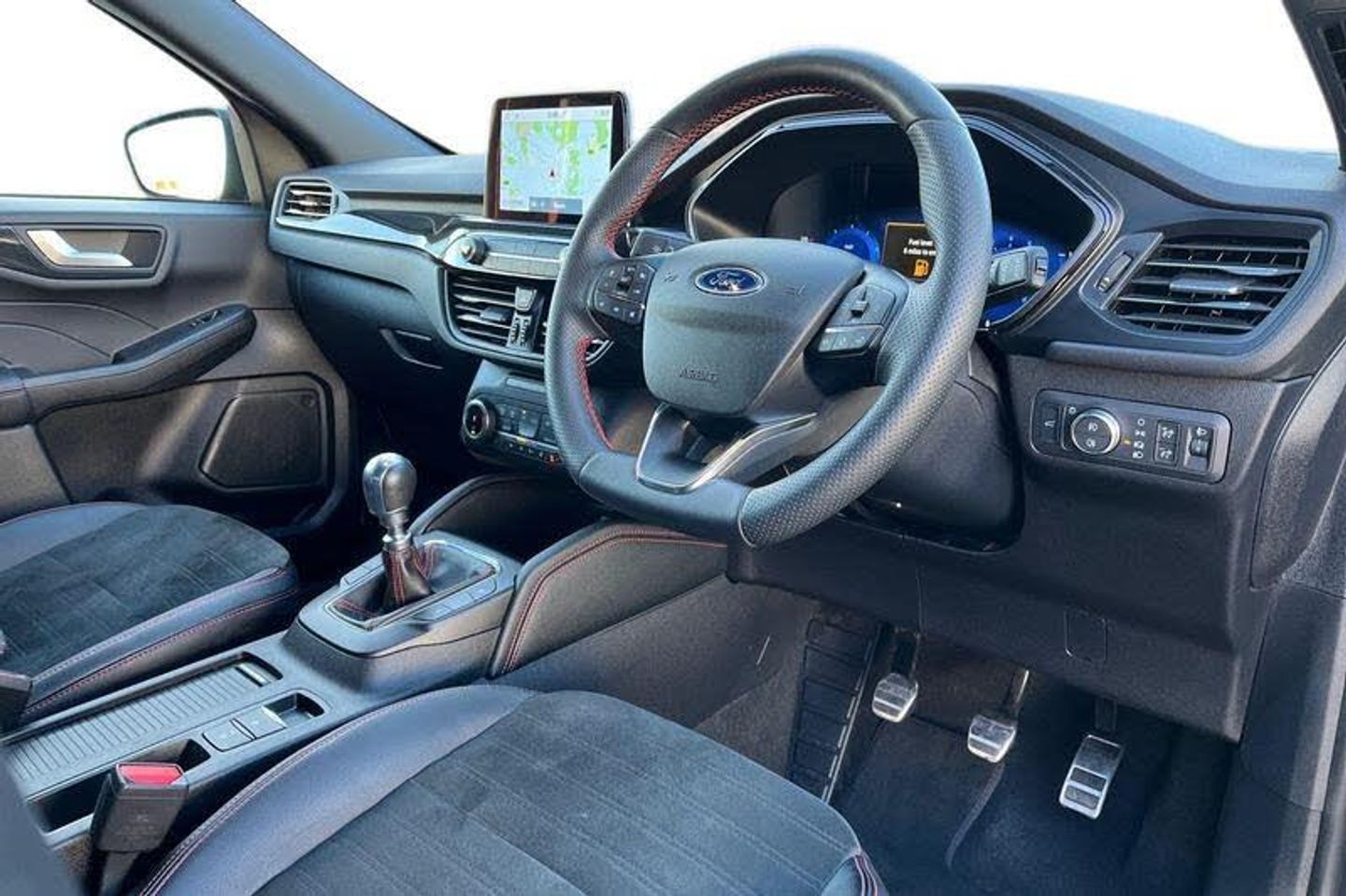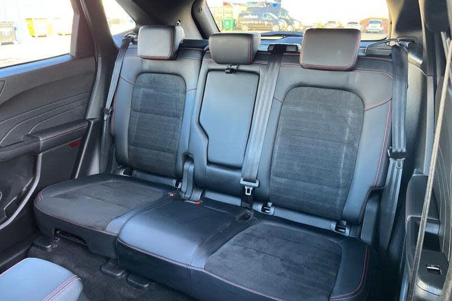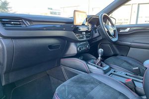 12.3 digital colour instrument cluster, Ford easy fuel, Ford SYNC 3 with 8 TFT LCD touchscreen, App Link, andriod auto/apple carPlay, emergency assistance and navigation with Ford pass connect, Front and rear parking sensors, Hands free power tailgate, Lane keeping aid with lane departure warning, Power assist steering, Rear view camera, Selectable drive modes, Service interval indicator, Auto headlamps with high and low beam, Black roof rails, Body colour bumpers, Day/night rear view mirror, Front LED fog lamps, Large rear roof spoiler, LED daytime running lights, LED rear lights, Power folding, electrically adjustable and heated door mirrors with puddle lights, Power front/rear windows with global close, Quickclear heated windscreen, Rain sensing wipers, Rear privacy glass, Rear side wing doors, Rear wiper, ST Line body styling kit with unique front and rear fascia and bumper, rear painted diffuser, front painted skid plates, dark mesh upper grille, ST Line front scuff plates, Third brake light, Twin exhausts, 2nd row sliding seats with 60:40 split, Alloy pedals, Centre console with electronic parking brake, Dark headlining and pillars, Electronic automatic temperature control (EATC), Flat bottomed leather steering wheel in sensico with red stitching, Front and rear head restraints, Partial premium touch Sensico with black cloth inserts and red stitching, Rear centre head restraint, Single front passenger seat, Sports seats, ST Line front and rear floor mats, ST Line gear knob, 3x3 point rear seatbelts, Airbags - front driver/passenger, front and rear curtain, Drivers knee airbag, Electronic stability control (ESC) and ABS, Ford MyKey Gen 2 safety system, Manual child proof rear door locks, Post collision braking, Pre collision assist with autonomous emergency braking, Rear seat Occupancy alert, Red brake calipers, Tyre pressure monitoring system