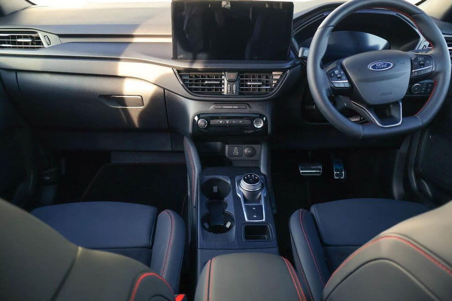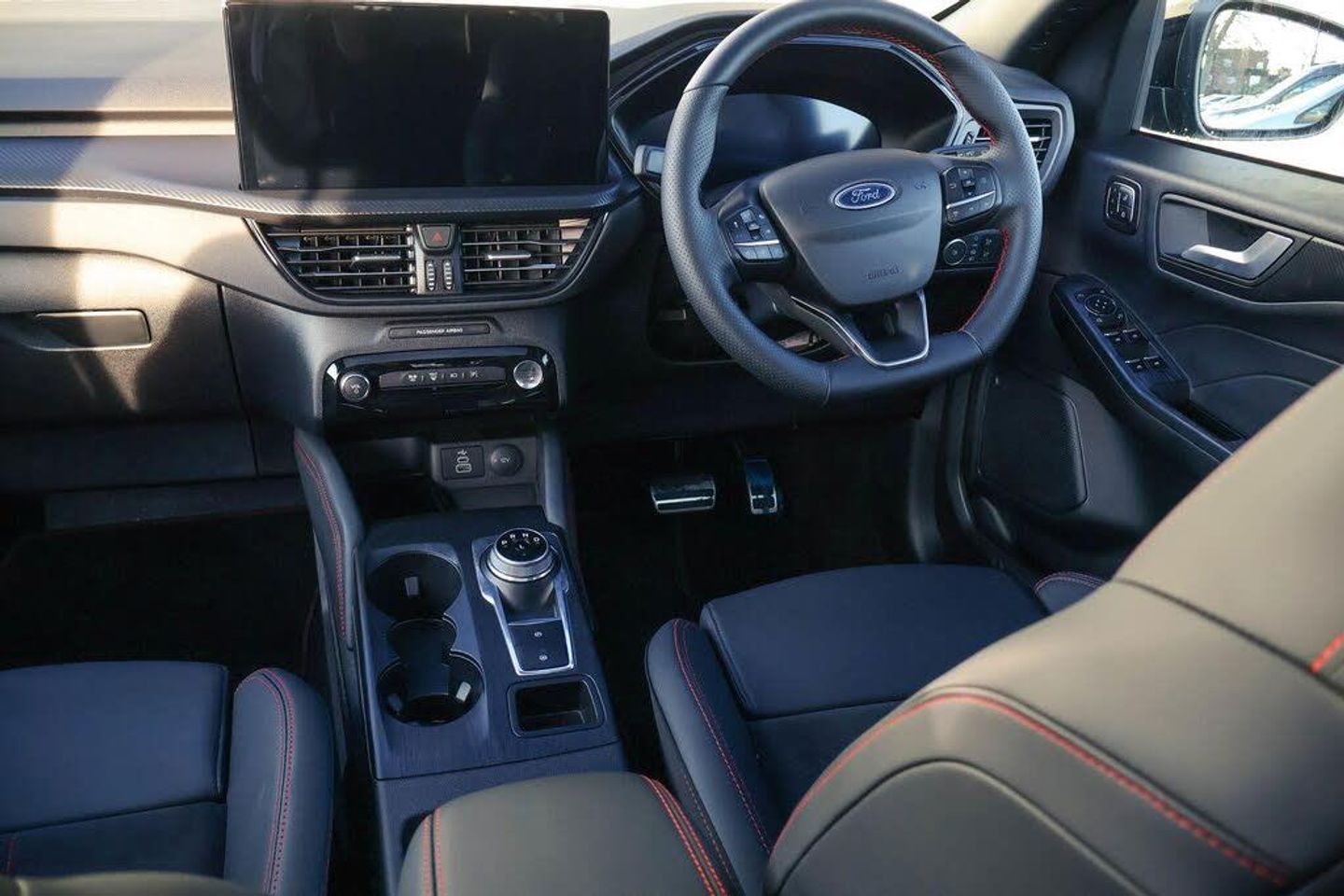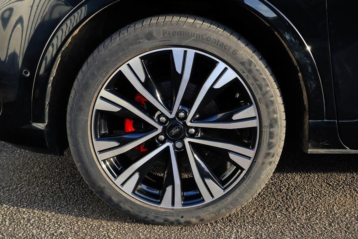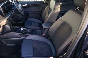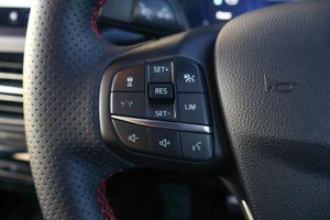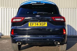 12.3" digital colour instrument cluster, 360 degree camera, Clear exit assist, Cross traffic alert with active braking, e-Call (emergency call), Ford easy fuel, Ford SYNC 4 Navigation with 13" touchscreen, DAB radio, emergency assistance, Andriod Auto/Apple CarPlay, 5G modem Ford Pass connect, Front and rear parking sensors, Hands free power tailgate, Lane centering assist, Lane keeping aid with lane departure warning, Power assist steering, Selectable drive modes, Service interval indicator, BO premium audio system with 10 speakers, subwoofer and 2 USB ports, Auto headlamps with high and low beam, Black roof rails, Body colour bumpers, Front LED fog lamps, Large rear spoiler, LED daytime running lights, LED rear lights, LED third brake light, Pop out door edge protectors, Power front/rear windows with global close, Power heated folding door mirrors with puddle lights, memory function and camera, Power opening panoramic roof, Quickclear heated windscreen, Rain sensing wipers, Rear privacy glass, Rear side wing doors, Rear wiper, ST-Line body styling kit, 2nd row sliding seats, Electronic automatic temperature control (EATC), Front and rear head restraints, Partial premium touch sensico upholstery, Rear centre head restraint, Single front passenger seat, Sports seats, Engine immobiliser, Keyless entry and Ford power start button (Keyless start), Locking wheel nuts, Remote powered central double locking doors, Thatcham category 1 alarm, 20in Alloy Wheels - 5x2 Spoke - Absolute Black - Machined, Mini Spare Wheel, Technology Pack, Single Phase Public Charge Cable and Cable Bag
