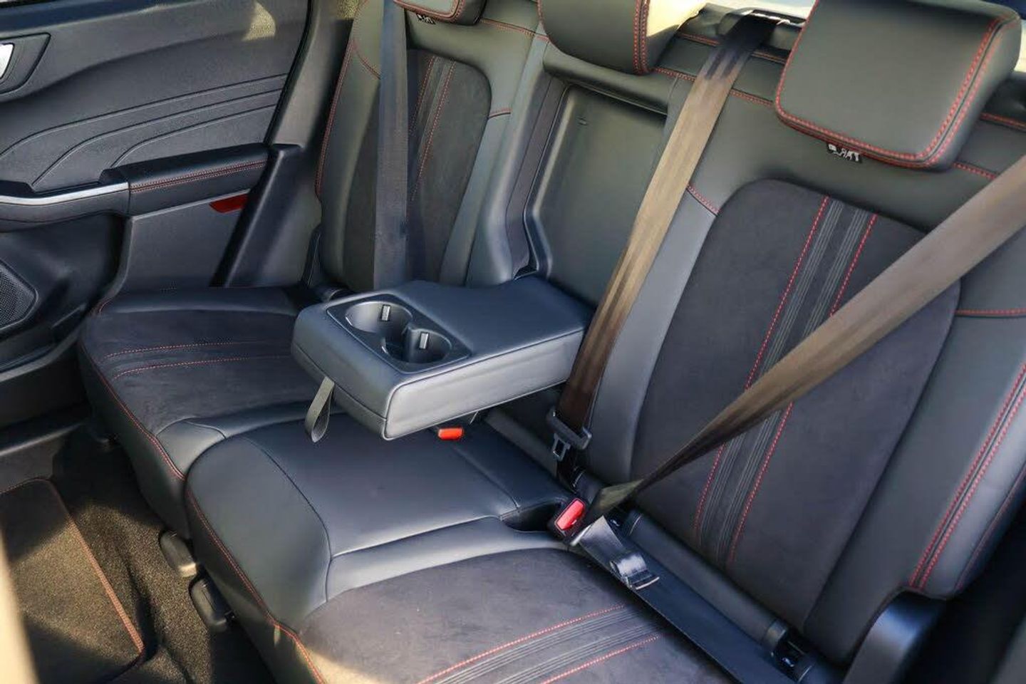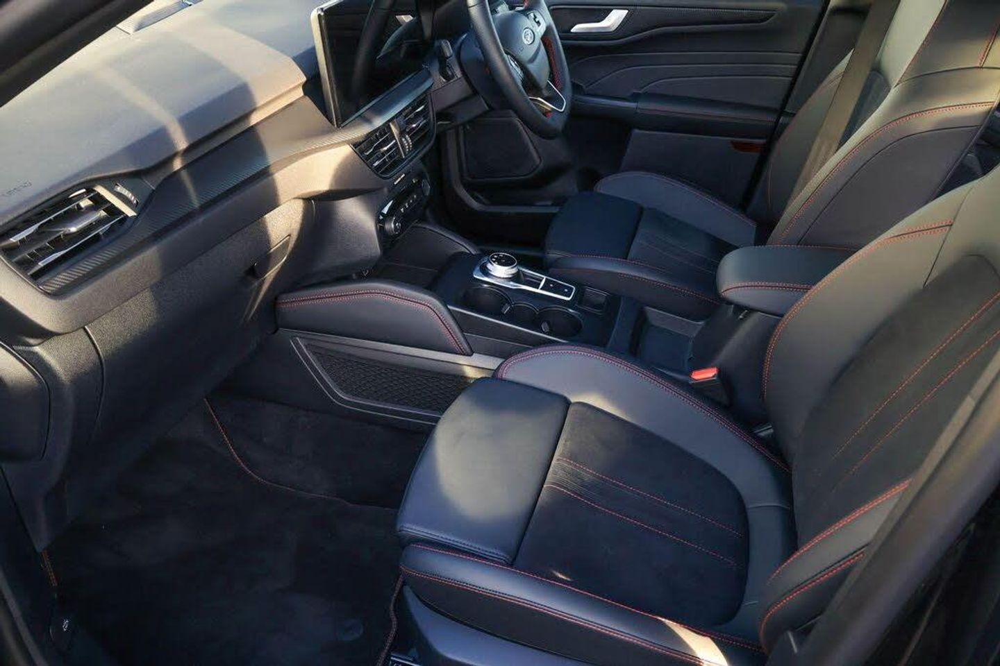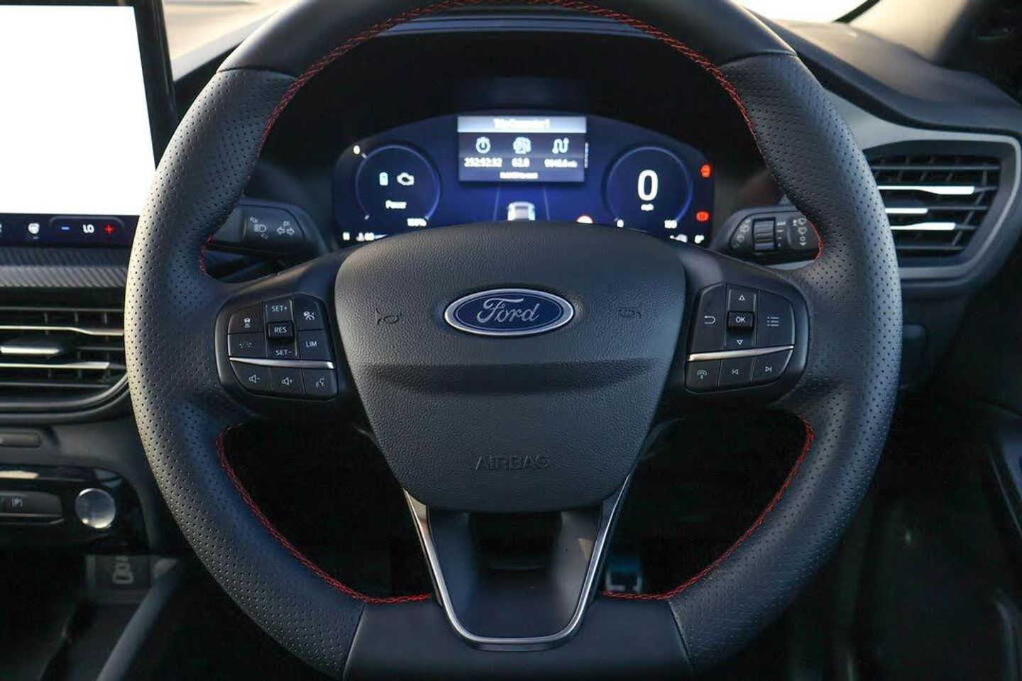 12.3" digital colour instrument cluster, 360 degree camera, Clear exit assist, Cross traffic alert with active braking, e-Call (emergency call), Ford easy fuel, Ford SYNC 4 Navigation with 13" touchscreen, DAB radio, emergency assistance, Andriod Auto/Apple CarPlay, 5G modem Ford Pass connect, Front and rear parking sensors, Hands free power tailgate, Lane centering assist, Lane keeping aid with lane departure warning, Power assist steering, Selectable drive modes, Service interval indicator, BO premium audio system with 10 speakers, subwoofer and 2 USB ports, Auto headlamps with high and low beam, Black roof rails, Body colour bumpers, Front LED fog lamps, Large rear spoiler, LED daytime running lights, LED rear lights, LED third brake light, Pop out door edge protectors, Power front/rear windows with global close, Power heated folding door mirrors with puddle lights, memory function and camera, Power opening panoramic roof, Quickclear heated windscreen, Rain sensing wipers, Rear privacy glass, Rear side wing doors, Rear wiper, ST-Line body styling kit, 2nd row sliding seats, Electronic automatic temperature control (EATC), Front and rear head restraints, Partial premium touch sensico upholstery, Rear centre head restraint, Single front passenger seat, Sports seats, Engine immobiliser, Keyless entry and Ford power start button (Keyless start), Locking wheel nuts, Remote powered central double locking doors, Thatcham category 1 alarm, 20in Alloy Wheels - 5x2 Spoke - Absolute Black - Machined, Mini Spare Wheel, Technology Pack, Single Phase Public Charge Cable and Cable Bag
