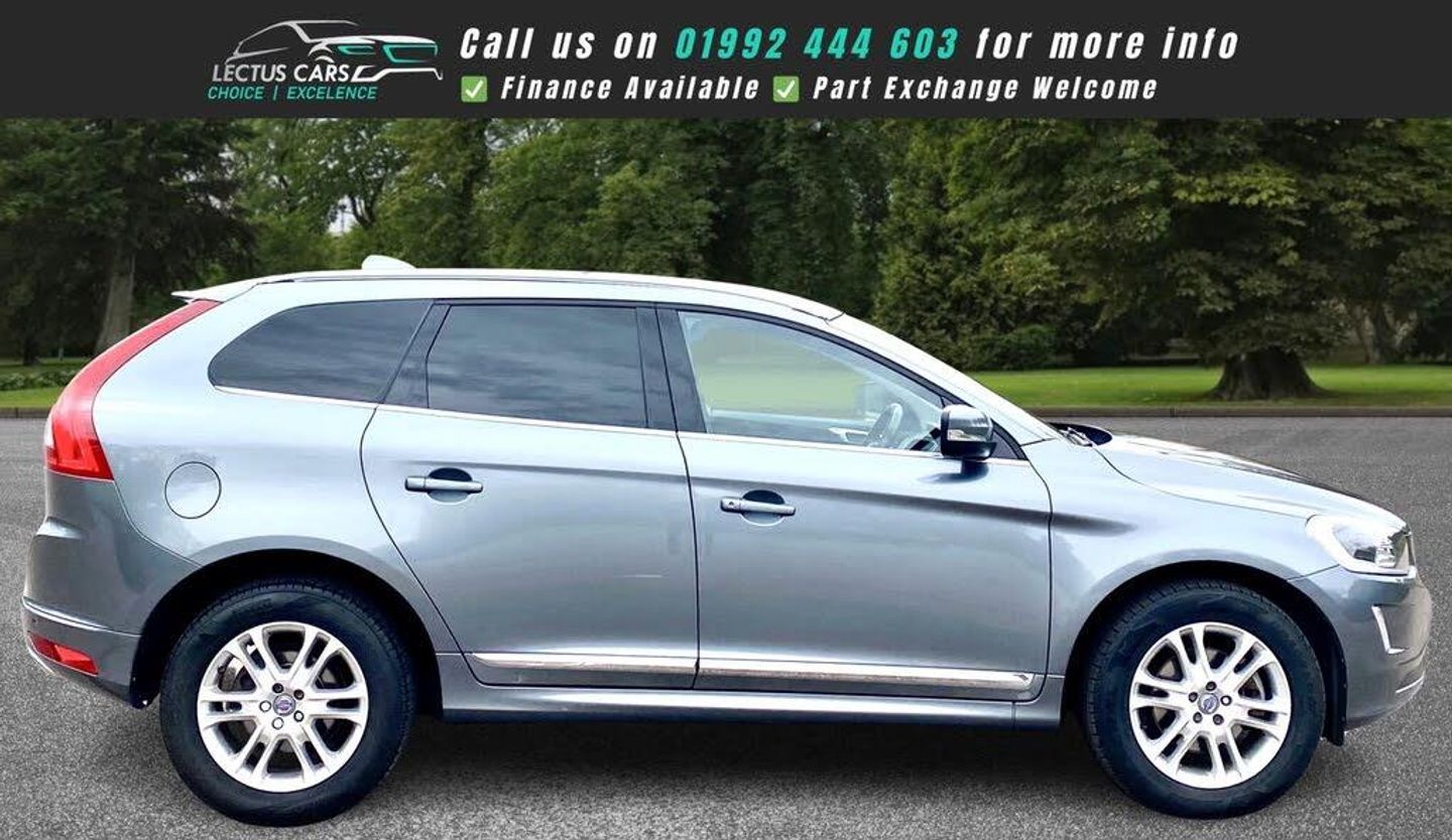Finished in Savile Grey Metallic with Black leather upholstery this 5dr estate is complimented by a FULL service history and having just been serviced and MOT'd on October 16th, this 2016 Volvo XC60 D4 SE Lux Nav presents an exceptional opportunity with its remarkably low mileage of just 60,250 miles, a clear vehicle history check, and a Euro 6 compliant 2.0L diesel engine. The SE Lux Nav trim level ensures a premium experience, complemented by desirable features such as heated front seats for added comfort, a sophisticated Sensus Connect system with a premium Harman Kardon sound system for an immersive audio experience, and a power driver's seat with memory settings for both the seat and exterior mirrors. Practicality is also a strong suit, with tinted rear doors and cargo area windows offering privacy and a large boot space ready for all your needs.Experience impressive efficiency with this XC60, boasting an outstanding fuel economy of 60 mpg, which is significantly better than many other vehicles in its class. This efficiency is further supported by its low CO2 emissions, making it a more environmentally conscious choice. The performance is equally noteworthy, with a brisk 0-60mph acceleration time of just 7.6 seconds, demonstrating that this Volvo offers a compelling blend of economy, practicality, and engaging driving dynamics. The inclusion of a Bluetooth handsfree system ensures you can stay connected safely on the go.See the video in the advert or use this link: https://youtu.be/9nbUT4VJU7A?si=KS5novEloXa8oQWl0% Deposit when financing through us.DELIVERY AVAILABLE. The Car Comes With A 6 Month Premium Nationwide Parts And Labour Warranty Finance Available From 10.9 % Apr All Inspections Welcome AA/RAC Px Welcome Viewing By Appointment Only Please Call John On 07785 555111 Or 01992 444603-LOW MILES JUST SERVICED