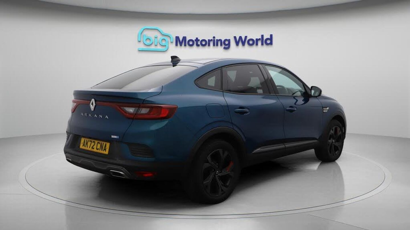 18'' alloy wheels,Leather Seats-Our Renault Arkana is finished in Blue. Specification includes a range of fantastic features including 18'' alloy wheels, Leather Seats, Adaptive Cruise Control, Parking Pack, Privacy Glass, Rear View Camera, Internet, Bluetooth, Blind Spot Assist, Parking Sensors Specification information is supplied by CAPHPI and may vary to the actual car. This data does not form any part of a buying contact. Please check specification prior to purchase in-store. The MOT is valid until June 2026, visit bigmotoringworld.co.uk for more photos, a 360 tour, service history and a free HPI report.Were BIG on peace of mind and this Blue Renault Arkana has completed our comprehensive 200 point inspection and passed all checks. Its ready for you to drive away with immediate collection in-store. We include a 90-day warranty as standard plus an option to extend for up to 3 years.Reserve this car exclusively for you, safely and securely at bigmotoringworld.co.uk, with a fully refundable £99 deposit. Test drive before you buy, with no commitment, no hassle and a completely haggle free experience. Still searching and want to see thousands more cars? We are BIG on choice with over 8000 cars to choose from.Visit our award winning web site bigmotoringworld.co.uk.Were Big Motoring World and were BIG on what matters to you.