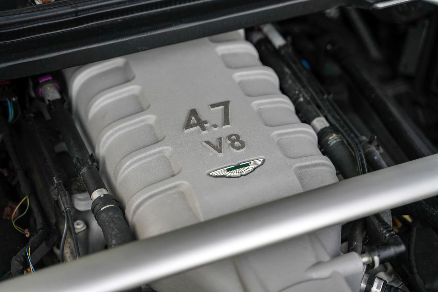 It features animated 4.7 litre V8 muscle up front, with luxurious cabin, quality instruments and super-comfortable seats for touring. This car is resplendent in Meteorite Silver (dark grey, really), with black leather trim. Maintenance has been courtesy of (mostly) Aston Martin Newcastle in the hands of three private owners’. It has travelled just 22,000 warranted miles.