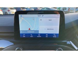 Air Conditioning, Metallic Paint, Satellite Navigation, Alloy Wheels, DAB Radio, Bluetooth, Stop Start, Heated Front Windscreen, USB, Keyless Entry-Push Button Start, Apple-Android Play& Auto Lights, Front floor mats, Electrically operated front and rear windows with one touch opening and closing, Electronic stability control, Sports tuned suspension, Bluetooth system, Selectable drive mode, Easy fuel capless refuelling system, Ford SYNC with 8" TFT touchscreen, DAB radio and app link Android auto/Apple carplay, Body coloured electrically operated and heated door mirrors with side indicators, 6 speakers, Body coloured bumpers, LED daytime running lamp, Manual air conditioning, Centre console with armrest, Passenger airbag deactivate switch, Contrast stitching - Red, Driver's lumbar support, Keyless start with 'Ford Power' starter button, 17" 5x2 spoke alloy wheels with rock metallic finish, Mini steel spare wheel
