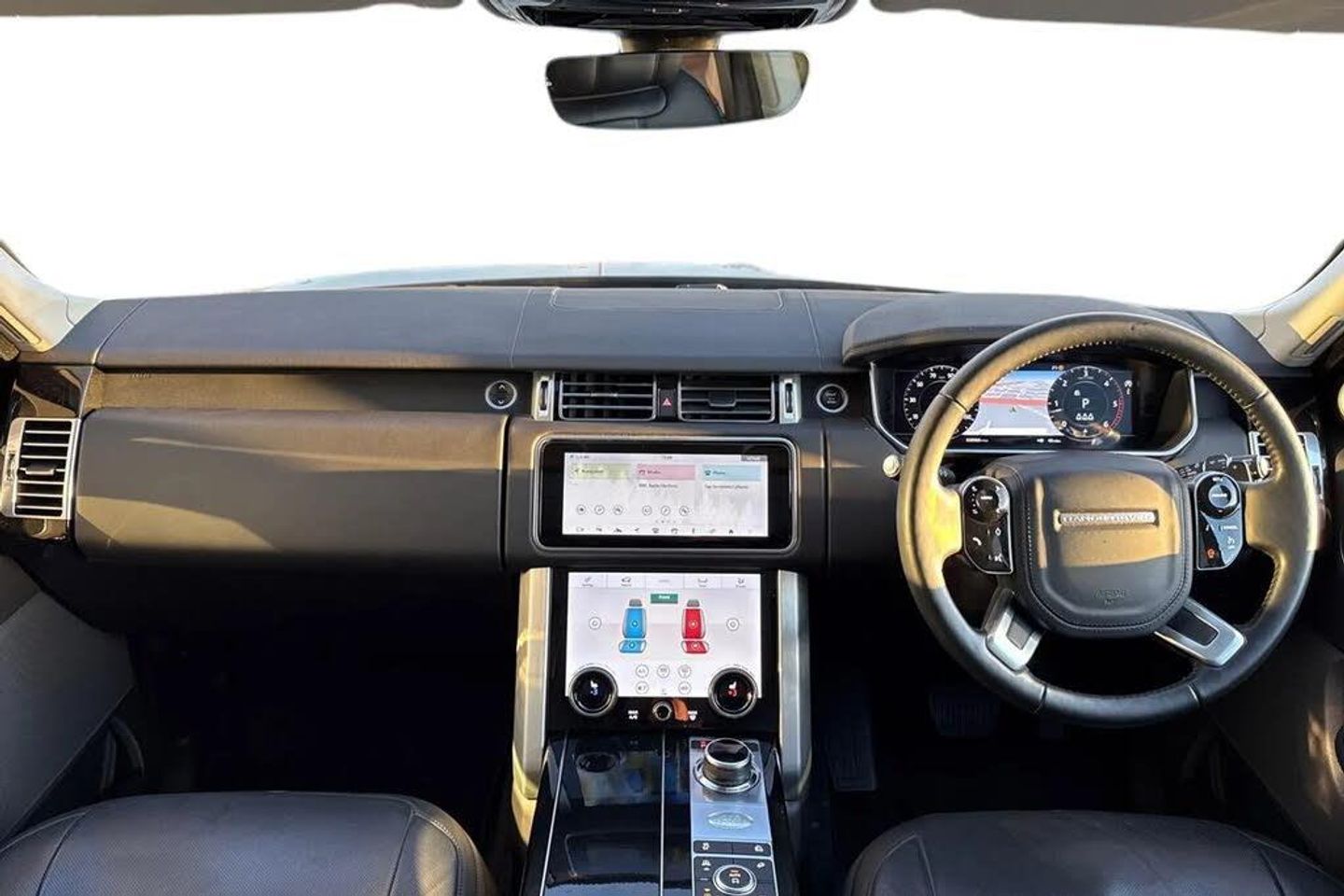 12V power point in luggage area,12V power sockets,3 rear 3 point seatbelts,3 rear headrests,360 degree parking aid,8 speed automatic transmission,Acoustic windscreen,Adaptive dynamics,All terrain progress control,All Wheel Drive (AWD),Android Auto,Anti-lock braking system (ABS),Apple car play,Auto dimming interior rear view mirror,Auto lock system when vehicle in motion,Auto self levelling headlights,Automatic access height,Automatic headlights,Black gearshift paddles,Bluetooth mobile phone connection,Body coloured bumpers,Centre console with storage and armrest,Centre high mounted stop light,Clear exit monitor,Configurable Ambient Interior Lighting,Cornering brake control (CBC),Curtain airbags,Customer configurable autolock,Customer configurable single point entry,Diesel particulate filter,Digital Audio Broadcast radio-DAB,Digital TV,Door/quarter lights in toughened plate glass,Driver and passenger front seat armrests,Driver condition monitor,Driver/front passenger head+thorax airbag,Drivers knee airbag,DSC - Dynamic Stability Control,Dynamic route guidance,Easy boot loading,Electric power assisted steering (EPAS),Electric windows with one touch open/close and anti trap,Electrical towing preparation,Electrically adjustable steering column,Electronic air suspension,Electronic brake force distribution,Electronic parking brake,Electronic traction control,Emergency braking,ESP,Folding rear seats,Follow me home headlights,Front airbags with passenger seat occupant detector,Front and rear cupholders,Front and rear grab handles,Front and rear recovery eyes,Front headrests,Front seat back map pockets,Front seatbelt pretensioners with force limiters,Front side airbags,Grey anodised brake calipers,Headlamp power wash,Heated rear window,Heated steering wheel,Heated windscreen includes heated washer jets,Height adjustable front seatbelts,Hill descent control,Hill launch assist,Immobiliser,InControl app,Integrated twin tailpipes,Interactive Driver display instrument cluster,Intrusion sensor and alarm,Keyless entry,Lane departure warning system,LED rear lamps,LED tail lights,Loadspace cover,Loadspace light,Lockable glovebox,Locking wheel nuts,Low traction launch,Luggage compartment lighting,Luggage tie down in loadspace,Navigation pro system with 10" touch screen, app interface and media storage,Perforated Semi-Aniline leather upholstery,Power fold, auto-dimming, heated door mirrors with memory and approach lights,Power front/rear windows with global close,Power operated child locks,Powered gesture tailgate/boot lid,Push button starter,Rain sensing windscreen wipers,Rear camera wash,Rear centre armrest,Rear fog lights,Rear ISOFIX,Rear traffic monitor,Rear wash/wipe,Remote central locking,Roll stability control,Rotary shifter,Service interval indicator,Side repeater indicators in mirror,Smartphone pack - Range Rover,Soft close doors,Terrain Response 2 Auto,Through load facility,Touch pro duo system,Traffic sign recognition with adaptive speed limiter,Trailer stability assist,Trip computer,Twin blade sunvisors with Illuminated vanity mirrors,Twin speed transfer box,Tyre pressure monitoring system (TPMS),USB socket,Voice control system,Front Centre Console Refrigerator Compartment,Privacy Glass,Secure Tracker Pro