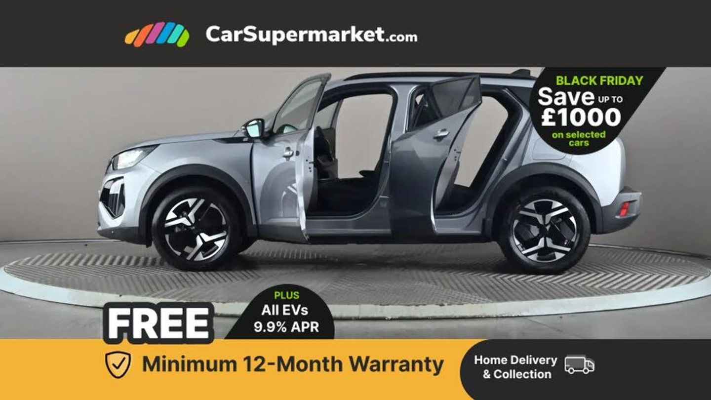 Bluetooth telephone facility,Driver attention warning,E-call,Exterior temperature indicator with ice warning,Multi function trip computer,PEUGEOT i-Cockpit with 10" high definition capacitive touchscreen,PEUGEOT i-Cockpit with compact steering wheel,PEUGEOT i-Cockpit with configurable headup instrument panel,Speed limit recognition and recommendation,Wireless mirror screen with apple carplay and android auto,Mode 3 type 2 cable for wallbox charging,1x USB-C socket in rear and 1x USB-A socket in rear,2 USB-C ports in the front,6 speakers radio with mp3 compatible,DAB Radio (Digital Audio Broadcasting),2 X Rear number plate lights,Automatic hazard light activation upon heavy brake application,Black front wing trim with gloss black detail,Body coloured exterior door handles,Colour coded rear roof spoiler,Colour coded roof,Dark tinted rear side and tailgate windows,Diamond black mirror shells,Dichroic badging on tailgate,Eco LED headlights,Electric, heated, and power folding door mirrors,Electrochrome rear view mirror,Front bumper - Meteor grey lower trim,Gloss black finish on B pillar,Gloss black rear cluster connecting strip,Gloss black roof bars,Headlights left on audible warning,LED daytime running lights with distinctive 3 claw signature,LED side indicator lights integrated into door mirrors,LED third brake light,Model designation badges front and rear,One touch electric front/rear windows with pinch protection,Radiator grille - Body coloured top edge trim,Radiator grille - body coloured vertical chequered grille,Rear full LED 3D peugeot signature claw effect lights with daylight function,Rear reversing lights,Rear side wing doors,Rear windscreen wiper triggered automatically in reverse gear,Tailgate with heated rear windscreen and wiper blade,Wheel arch extensions,1/3 to 2/3 split folding rear seats,12V socket,3 seat bench in 2nd row,Automatic air conditioning with pollen and active carbon filter,Central front armrest with storage compartment,Driver and front passenger comfort seats,Driver seat manual adjustment - height, longitudinal and back rest angle,Electric power steering with reach and rake adjustable steering column,Front interior light with reading spotlights x2 in rear,Front LED interior light with 2 reading spotlights and rear interior light with timer,Front passenger seat manual adjustment - height, longitudinal and back rest angle,High centre console,Leather steering wheel,Multifunction steering wheel,Pre heating function,Roof lining - Mistral black,Seatbelt unfastened on the move audible and visual alert for front and rear seats,Single front passenger seat,Tri material cloth/leather effect upholstery,Two position modular boot floor,Visibility pack - 2008,2x 2nd row ISOFIX child seat mountings,ABS (Anti-lock Braking System) with EBD (Electronic Brakeforce Distribution) and EBA (Emergency Braking Assistance),Active safety brake with night function/cyclists/pedestrians,Adaptive driver and front passenger airbags with passenger airbag deactivation function,Child locking functionality on rear doors,Driver/front passenger side airbags,Electric parking brake,ESP (Electronic Stability Program) + Hill Start Assist,Front and rear curtain airbags,Front and rear disc brakes,Front and rear three-point retractable seatbelts, with force limiters,Front optimised safety headrests and rear retractable headrests (x3), height adjustable,Tyre pressure sensor,Automatic door locking when moving off,Deadlocks,Electronic code immobiliser,Thatcham category 1 alarm,Carbon effect Dashboard, front and rear door panel finish,17" Karakoy diamond cut alloy wheels,Tyre inflation kit