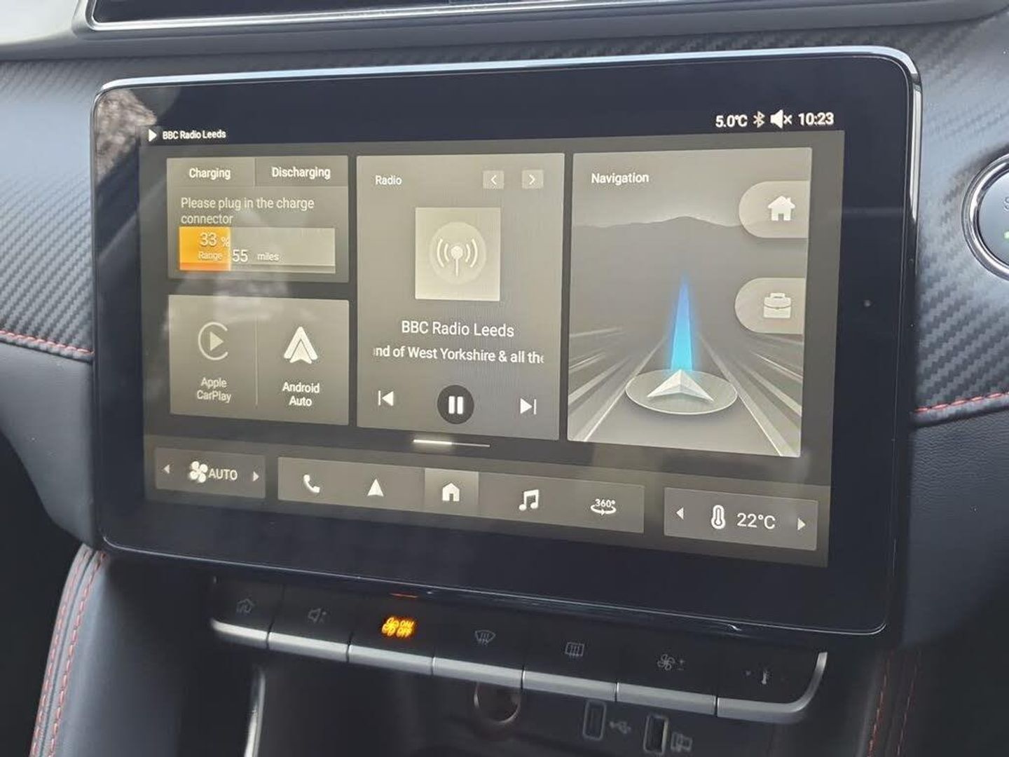 10.1" colour touchscreen, 3 Driving modes, 360 degree parking camera, Adaptive cruise control, Android Auto, Apple CarPlay, Bluetooth connectivity, eCall emergency call system, Full digital driver information display, Intelligent speed limit assist, iSmart user app (includes vehicle status, charging management, WiFi), Lane keep assist system (LAS) with Lane departure warning system (LDWS), PAS, Rear parking sensors, Rotary gear selector, Satellite Navigation, Traffic jam assist, Trip computer, 7 kW onboard charger, Vehicle to load charging, 2 USB C Ports (1x front, 1x rear), 3 USB ports (1x front - inc data transfer, 1x rear, 1x rear view mirror - power only for dash cam accessory), 4 speaker audio system, DAB+ radio, Auto headlights, Electrically adjustable, folding, body colour door mirrors, Follow me home headlights, Front and rear electric windows with driver's one-touch up/down, Intelligent high beam, LED Bi-Function headlights, LED centre brake light, LED daytime running lights, Rear side wing doors, Rear wiper, 12V power sockets, 2nd row 60/40 split/fold, 3 rear headrests, 3 seat bench in 2nd row, 4 way manually adjustable passenger seat, 6-way manually adjustable driver's seat, Adjustable dual height boot floor, Auto air conditioning, Front headrests, Houndstooth fabric upholstery, ISOFIX restraints on outer rear seats x2, Leather steering wheel, Single front passenger seat, 3 Regenerative braking modes (1, 2, 3), 3x3 point rear seatbelts, ABS/EBD, Active emergency braking with pedestrian/Bicycle detection, Anti rolling protection, Dual front airbags, EBA, Electric parking brake with auto hold function, ESP, Front passenger airbag deactivation switch, Front seatbelts (3-point + pretensioner + load limiter), Front side airbags, Hill launch assist, Rear door child safety locks, Rear passenger seatbelt alert, Seatbelt reminder for driver and front passenger, Side curtain airbags, Tyre pressure monitoring system, Alarm system and engine immobiliser, Keyless entry and push button start system, Remote central locking, Speed sensing door locks, 17" Propeller alloy wheel aero cover, Tyre repair kit