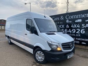 2018 18 REG LEGENDARY MERCEDES SPRINTER LWB LONG WHEEL BASE HI ROOF PANEL VAN COVERED 143815 MILES. 2.1 CDI 143 BHP TURBO DIESEL WITH 6 SPEED GEARBOX REAR WHEEL DRIVE. INDUSTRIAL LAUNDRY COMPANY OWNER FROM NEW WITH FULL MERCEDES MAIN VAN DEALER SERVICE HISTORY. ONLY BEEN USED TO TRANSPORT COMMERCIAL LINENS SO NOT HAD HARD LIFE. PLASTIC LINED AND INSULATED REAR LOAD AREA WITH FULLY SEALED FLOOR. VERY WELL LOOKED AFTER HENCE DRIVES SUPERB. 6 MONTHS NATIONWIDE PARTS AND LABOUR WARRANTY ALL INCLUDED IN THE PRICE. CURRENT MOT VALID TILL 03/05/2026, FULL 12 MONTHS MOT WITH CLEAN HEALTHCHECK UPON SALE ALONG WITH FULL SERVICE USING GENUINE MERCEDES FILTERS AND OIL. REAR VIEW CAMERA. 2 REMOTE KEYS. CRUISE CONTROL. BLUETOOTH TELEPHONE+AUDIO INTEGRATION. USB AUX IN MUSIC INTERFACE. DAYTIME RUNNING LIGHTS. ADAPTIVE BRAKE LIGHTS. STANDARD ROAD TAX BAND 12 MONTHS PRICED 345 POUNDS. 2000 KG TRAILER PULL CAPACITY. 5500 KG TRAIN WEIGHT. 1086KG PAYLOAD CAPACITY. SUPERB ECONOMY, BEST IN CLASS. HILL START ASSIST. CROSSWIND ASSIST. SHIFT POINT INDICATOR. OVERHEAD STORAGE SHELVING TO CAB. UNDERSEAT STORAGE. 3 SEATER CAB. CUP HOLDERS. SIDE MARKER LIGHTS. Bluetooth connection, Cruise control, PAS, Service indicator, Steering wheel mounted controls, Trip computer, Auxiliary input socket, Mobile phone App interface, OEM sound system, USB/iPod interface, Front electric windows, Front head restraints, Solid Paint, ABS, Drivers airbag, ESP, Traction control, Alarm, Immobiliser, Remote central locking, Cloth seat trim. GREAT VALUE FOR MONEY LATE MODEL SPRINTER. DRIVES LOVELY. NICE RELIABLE VEHICLE. CHOICE OF HAND PICKED QUALITY USED VANS IN STOCK NOW. CHOICE OF MERCEDES SPRINTERS ALWAYS IN STOCK. FINANCE ARRANGED AT MARKET LEADING RATES. NATIONWIDE DELIVERY SERVICE AVAILABLE. ALL DEALER FACILITIES. FULL PERSONALISED VIDEOS AVAILABLE. CONTACTLESS VIEWING & PURCHASING AVAILABLE. FOR ALL ENQUIRIES PLEASE CALL JIMMY ON 07989 123497 / 01733 564926. FOR MORE PICTURES PLEASE VISIT DEALER WEBSITE. SPECIALIST SUPPLIER OF PRESTIGE, PERFORMANCE & 4X4's. HONEST FRIENDLY & PROFESSIONALLY RUN FAMILY BUSINESS. 3 GENERATIONS OF EXPERIENCE. GENUINE 5 STAR SERVICE & REVIEWS TO REFLECT. BUY WITH CONFIDENCE. GOOD OLD FASHIONED NO NONSENSE CUSTOMER FIRST APPROACH. FOR FULL STOCKLIST PLEASE VISIT DEALER WEBSITE