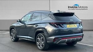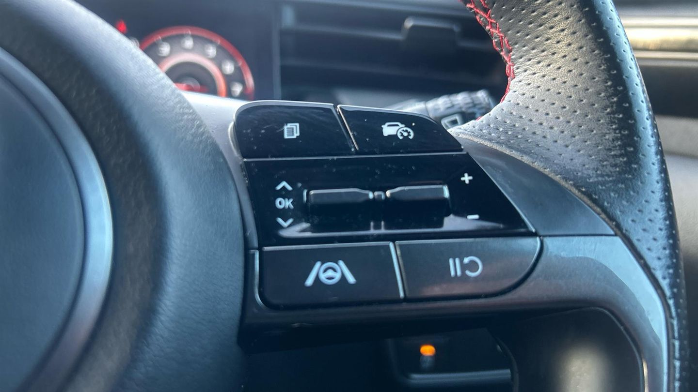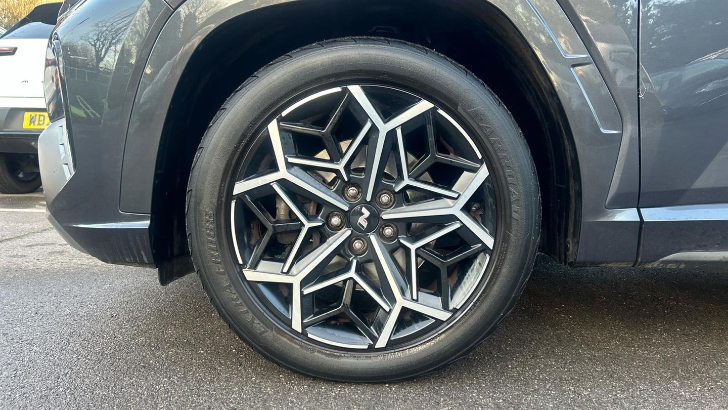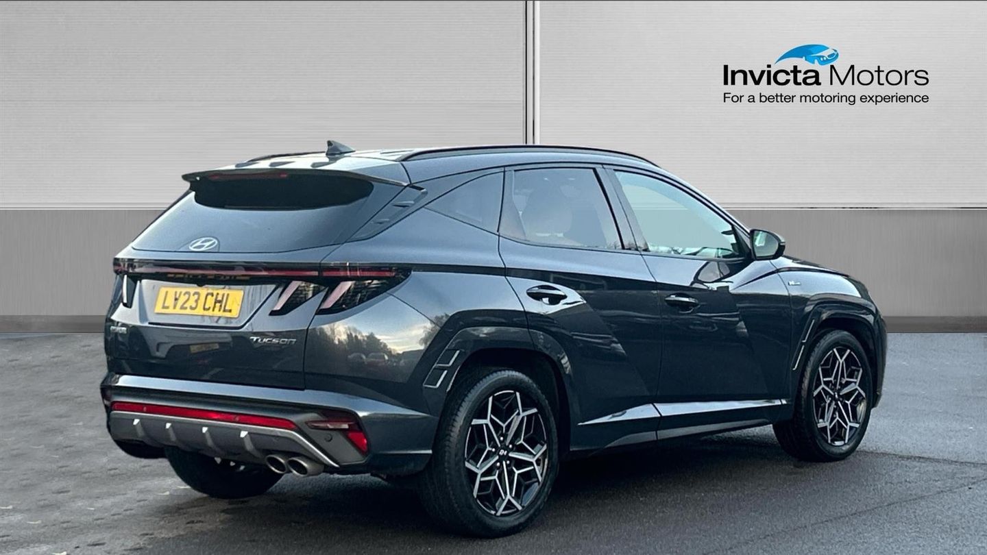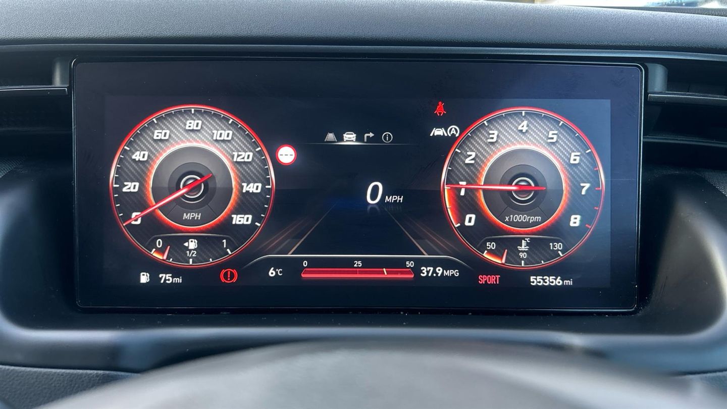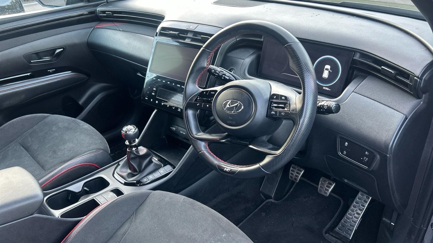 The 2022 Tucson N Line blends athletic styling and high-spec tech with true SUV practicality. A smart, sporty choice for those wanting premium feel without going full performance. The 2022 Tucson 1.6 TGDi N Line delivers sporty styling and premium touches in a practical SUV. It comes with 19 N Line alloy wheels, body-colour wheel arches, gloss black exterior trim, and N-Line badging for a dynamic look. Inside, you'll find N-Line sport seats in leather/suede, red contrast stitching, a leather-wrapped multifunction steering wheel, dual-zone climate control, and a 10.25 digital instrument cluster. For convenience and connectivity, the car features a large touchscreen with navigation, Apple CarPlay / Android Auto, Bluetooth, and USB ports. Safety and everyday usability are well catered for with front + rear parking sensors, rear-view camera, lane-keep assist and Autonomous Emergency Braking as standard. The 1.6 TGDi petrol engine produces around 150 PS and offers combined fuel economy of 40.9 mpg..