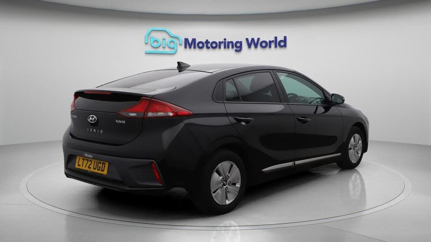 Apple CarPlay,Lane Assist-Our Hyundai IONIQ comes with optional extras worth £565. Specification includes a range of fantastic features including Apple CarPlay, Lane Assist, Android Auto, Privacy Glass, Rear View Camera, Bluetooth, Parking Sensors, Audi Parking System, Paddle Shift, 2 Zone Climate Specification information is supplied by CAPHPI and may vary to the actual car. This data does not form any part of a buying contact. Please check specification prior to purchase in-store. The MOT is valid until September 2026, visit bigmotoringworld.co.uk for more photos, a 360 tour, service history and a free HPI report.Were BIG on peace of mind and this Black Hyundai IONIQ has completed our comprehensive 200 point inspection and passed all checks. Its ready for you to drive away with immediate collection in-store. We include a 90-day warranty as standard plus an option to extend for up to 3 years.Reserve this car exclusively for you, safely and securely at bigmotoringworld.co.uk, with a fully refundable £99 deposit. Test drive before you buy, with no commitment, no hassle and a completely haggle free experience. Still searching and want to see thousands more cars? We are BIG on choice with over 8000 cars to choose from.Visit our award winning web site bigmotoringworld.co.uk.Were Big Motoring World and were BIG on what matters to you.