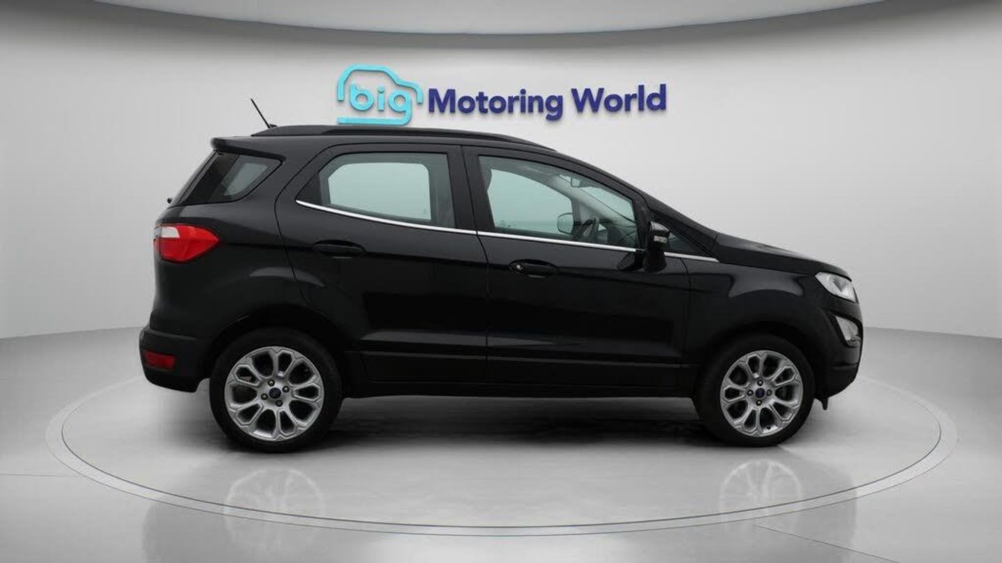 17'' Alloy Wheels,Part Leather-Our Ford EcoSport comes with optional extras worth £525. Specification includes a range of fantastic features including 17'' Alloy Wheels, Part Leather Seats, Cooled Glovebox, Satellite Navigation, Ford SYNC, Heated Windscreen, Rear View Camera, Internet, Bluetooth, Parking Sensors Specification information is supplied by CAPHPI and may vary to the actual car. This data does not form any part of a buying contact. Please check specification prior to purchase in-store. The MOT is valid until August 2026, visit bigmotoringworld.co.uk for more photos, a 360 tour, service history and a free HPI report.Were BIG on peace of mind and this Black Ford EcoSport has completed our comprehensive 200 point inspection and passed all checks. Its ready for you to drive away with immediate collection in-store. We include a 90-day warranty as standard plus an option to extend for up to 3 years.Reserve this car exclusively for you, safely and securely at bigmotoringworld.co.uk, with a fully refundable £99 deposit. Test drive before you buy, with no commitment, no hassle and a completely haggle free experience. Still searching and want to see thousands more cars? We are BIG on choice with over 8000 cars to choose from.Visit our award winning web site bigmotoringworld.co.uk.Were Big Motoring World and were BIG on what matters to you.