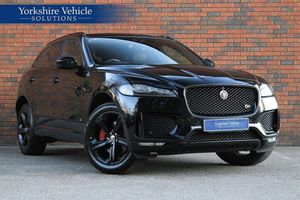 OVER 200 VEHICLES IN GROUP STOCK. Finished in Narvik Black with full jet perforated grained leather interior. Features include In Control touch pro pack with Meridian 380W sound (interactive drivers display & touch pro navigation) (£1250), fixed panoramic glass sunroof with powered sunblind (£1250), S black exterior pack (£690), adaptive LED headlights with LED signature daytime running lights (£915), surround camera system (£990), cold climate pack (heated front and rear seats, heated steering wheel, heated front windscreen and washer jets) (£540), 20 five spoke style 5035 alloy wheels in gloss black (£420), front and rear park distance control with rear view camera, 10-way electric front seats, digital dual zone climate control with automatic air conditioning, Bluetooth connectivity with media streaming, DAB digital radio, rain sensor, cruise control, adaptive dynamics with dynamic-I, lane departure warning, Jaguar performance braking system with red calipers, electric folding exterior mirrors, privacy glass (£395), keyless entry, interior ambient lighting, roof rails, dark hex aluminium trim finisher, voice control, electric tailgate, multifunctional leather steering wheel with paddleshift, automatic transmission plus much more standard specification. This F Pace S has £6,450 worth of options and is offered in excellent condition having covered 65300 miles from new. The car comes complete with a service history consisting of the following 25/08/2018 at 11935 miles, 08/04/2019 at 24038 miles, 05/10/2020 at 36321 miles, 22/10/2023 at 42196 miles and 13/02/2025 at 58695 miles. GOOGLE YORKSHIRE VEHICLE SOLUTIONS FOR OUR CUSTOMER REVIEWS. PLEASE CALL OR E-MAIL FOR FURTHER DETAILS OR TO ARRANGE A PERSONALISED VIDEO OR VIEWING. THIS DEALER HAS COMMITTED TO AA CARS STANDARDS AND IS APPROVED BY THE CHARTERED TRA-PAN ROOF,BLK PACK,20'S,360 CAM