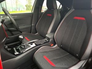 Cruise control with speed limiter, Driver drowsiness alert system, Panoramic rear view camera, Rear parking distance sensors, Smartphone integration compatible with Apple CarPlay and Android Auto, Traffic sign recognition, Start/stop system, Sports switch with engine sound enhancement, Speed sign recognition, Bluetooth A2DP audio streaming function (Advanced audio distribuition profile), DAB Digital radio, Steering wheel mounted controls, Two rear USB sockets, Automatic lighting control with tunnel detection, Automatically dimming anti dazzle rear view mirror, Dark tinted rear side windows + tailgate window, LED daytime running lights, 3 spoke flat bottomed leather steering wheel with satin chrome bezel, Black headliner, Electronic climate control (ECC), Heated steering wheel, Heated front seats, 2x Isofix child seat fitting on outer rear seats, Hill start assist, Emergency brake assist, Tyre pressure monitoring system
