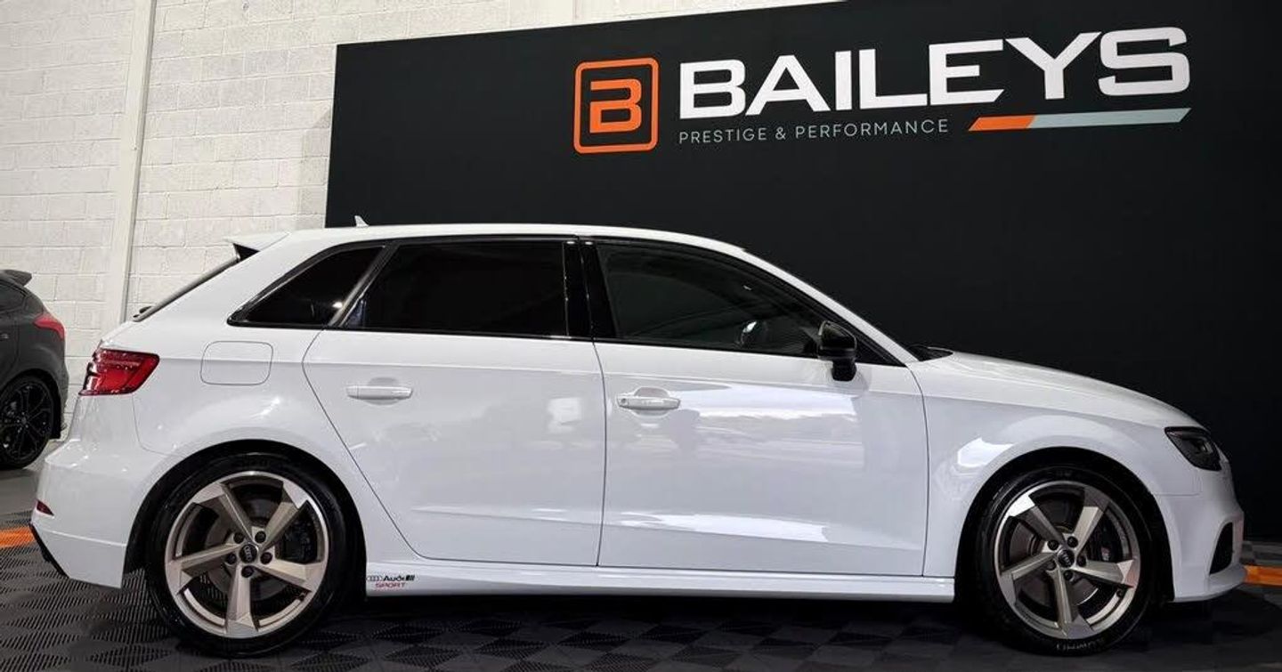 FOR SALE - 2017 Audi S3 2.0 TFSI Black Edition Sportback 5dr Petrol S Tronic quattro Euro 6 (s/s) (310ps), 62k miles, Full service history, Stunning example, Priced to sell at £19,295.00 62,959 miles backed by DVSA MOT Expiry date - 04/10/2026 Full Service history, Fully HPI clear Here at Baileys Prestige & Performance we are proud to offer this stunning 2017 Audi S3 Hatchback finished in white. This 2017 model is in excellent condition for its age and has got blacked out trim making this particular example stand out and look incredible. This car is a fantastic choice for those seeking a reliable and well-maintained vehicle. Powered by a 2.0-litre turbocharged petrol engine running 300 BHP this delivers an impressive amount of power providing a thrilling driving experience. The car has been well maintained with Great Service History and the bodywork is in very good condition. With the car being equipped with an automatic transmission and 4 wheel drive, this Audi offers precise handling and a smooth driving experience. Inside you'll find a spacious and comfortable cabin with seating for up to five passengers. The four doors provide easy access to both the front and rear seats, making it convenient for passengers of all ages. The hatchback body style offers ample cargo space, perfect for those who need to transport belongings or luggage.This particular car has a standard spec which includes heated leather seats, Media centre, plus more. SERVICE HISTORY Inspection delivery - 14/03/2017 - 5 miles Oil Change + Inspection - 21/06/2019 - 15,306 miles Oil Change + Inspection - 14/03/2020 - 19,279 miles Brake Fluid + Haldex Oil - 18/12/2020 - 20,844 miles Oil Change - 13/03/2021 - 21,502 miles Oil Change - 11/06/2022 - 29,001 miles Oil Change - 25/05/2023 - 39,116 miles Oil Change - 08/06/2024 - 49,489 miles Oil Change - 13/09/2025 - 61,605 miles Absolutely great example which has been priced fairly at £19,295 Contact us for further information or to book a viewing/test drive. Finance and extended warranties availa