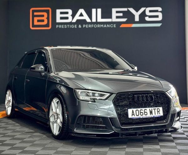 FOR SALE 2016 (66 plate) Audi S3 2.0 TFSI Sportback 5dr Petrol S Tronic quattro Euro 6, Stage one tuned to approximately 370BHP, 77k miles, Great service history, Stunning example - Priced to sell at £16,750 77,684 miles backed by DVSA MOT Expiry date - 6 February 2026 Good Service history, Fully HPI clear Here at Baileys Prestige & Performance we are proud to offer this stunning 2016 Audi S3 Hatchback finished in Stunning Daytona Grey. This 2016 model is in excellent condition for its age and has got a full low line splitter kit fitted and blacked out trim making this particular example stand out and look incredible. Alloy wheels are finished in silver/diamond cut finish and look mega. This car is a fantastic choice for those seeking a reliable and well-maintained vehicle. Powered by a 2.0-litre turbocharged petrol engine running stage 1 software this s3 is running approximately 370BHP. This delivers an impressive amount of power providing a thrilling driving experience. The car has been well maintained and the bodywork is in very good condition. With the car being equipped with a DSG transmission and 4 wheel drive it offers precise handling and a smooth driving experience with superb and sharp gear shifts. Inside youll find a spacious and comfortable cabin with seating for up to five passengers. The two doors provide easy access to both the front and rear seats, making it convenient for passengers of all ages. The hatchback body style offers ample cargo space, perfect for those who need to transport belongings or luggage. Overall a fantastic example for someone to enjoy for many years to come Spec Currently running Stage 1 software at approximately 370BHP, we have no paperwork to prove this - former owner made us aware only. Aftermarket Stainless steel Exhaust system Maxton design low line kit Lowering springs JR Racing alloy wheels spoiler extension Wind deflectors Tinted windows Black badges De wipered Honeycomb front grille