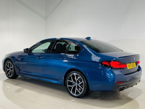 2021 BMW 5 Series 530e M Sport Pro | 65,000 Miles | 1 Owner | ULEZ OK Registration: VK71GEU Colour: Metallic Phytonic Blue with Dakota Black Leather (Blue/Black Stitching) This beautifully specified BMW 530e M Sport Pro combines electric-hybrid efficiency with executive comfort and unmistakable M Sport styling. Finished in the highly sought-after Phytonic Blue and paired with premium Dakota leather, this example has covered just 65,000 miles from new and benefits from a superb factory specification including the M Sport Pro Package, reversing camera, heated seats and full digital connectivity. Performance & Handling: 2.0 Petrol-Hybrid Electric (Plug-In) Smooth Auto Transmission Dynamic Driving Modes M Sport Pro Package Refined, quiet electric drive with strong hybrid performance Premium Features & Styling: Metallic Phytonic Blue 19" M Sport Alloy Wheels M Sport Stitched Seat Belts Privacy Glass LED Lighting with Ambient Interior Lighting M Sport Styling Throughout Technology & Interior: Dakota Black Leather with Contrast Stitching Heated Front Seats Electric Seats Multifunction M Sport Steering Wheel Apple CarPlay Satellite Navigation Reversing Camera + 360 Parking Sensors Bluetooth Connectivity Rear Charging Ports Additional Information: 65k Miles from New ULEZ Compliant Presented in excellent condition Free HPI Certificate Provided Nationwide Warranty Packages Available Any Inspection Welcome Indoor Viewing Facility 100+ Cars in Stock Debit Card Payment Welcome Approved Finance Partner (Consumer Credit Licence Held) Part Exchange Welcome Private Plate Transfers & Delivery Service Available Call to Reserve with a Fully Refundable Deposit If you'd like to arrange a viewing or reserve this vehicle, feel free to get in touch.