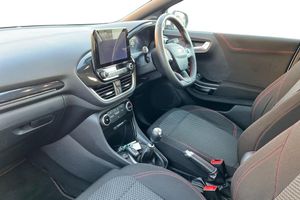 Cloth - Black with Red Stitching, 17in Alloy Wheels - 5x2 Spoke - Black Machined Finish, ABS - Anti-lock Braking System, Acoustic Laminated Windscreen, Active Grille Shutter, Automatic Dimming Rear View Mirror, Automatic Headlights with Rain-Sensing Wipers and Auto High Beam, Centre Console - Premium with Openable Stowage Area with USB Connectivity - 2 Cupholders and 12v Power Point, Courtesy Lights - Ambient LED Courtesy Lighting - Single Colour, Cruise Control with Intelligent Speed Assist, Drivers Manual 4-Way Seat Adjustment with Manual Lumbar Adjust, ESC - Electronic Stability Control and Hill Start Assist, Ecoboost Hybrid Tailgate Badge, Electric Windows - Front and Rear, Emergency Brake Warning - Automatic Hazard Warning Lights, First Aid Kit Strap, Ford MegaBox Extended Bootspace, Ford Power Starter Button, Ford SYNC 3 Navigation, Front Bumper - Unique ST-Line Sport Design - Body Colour, Front Floor Mats, Front Fog Lights, Front Seats - Sports Style, Full Digital 12.3in Instrument Cluster, Gear Knob - Aluminium, Handbrake - Black Sensico Trimmed with Stitching, Headliner - Deluxe, Instrument Panel - High Level, Intelligent Speed Assistance, LED Rear Lights, Lane Keeping Aid with Lane Departure Warning, Large Rear Spoiler - Body Colour with Centre High Mounted Stop Light, Locking Wheel Nuts, Lower Bodyside Moulding - Body Colour, Manual Air Conditioning, Passengers Seat - 2-Way, Post Collision Braking, Power Steering, Power-Foldable Heated Door Mirrors with Puddle Lamps, Pre-Collision Assist with Autonomous Emergency Braking and Pedestrian-Cyclist Detection, Projector Headlamps with LED Daytime Running Lights, Puma Badge, Quickclear Heated Windscreen, Rear Bumper Body Colour - Diffuser, Rear Parking Sensors, Rear Seats - 2-Way Head Restraint Up-Down, Rear Seats - Second Row 60-40 Folding Seats, Remote Central-Double Locking, Restrain Device Pack, ST-Line Badge, ST-Line Body Styling Kit, ST-Line Flat-Bottomed Leather Steering Wheel with Unique Red Stitching, Selectable Driving Modes - Normal - Eco - Sport - Slippery and Trail, Soft-feel Gearshift Boot with Red Stitching, Speed Limiter, Sports Suspension, Tailgate - Manual, Thatcham Alarm, Traction Control and Emergency Braking Assistance, Trip-Fuel Computer, Tyre Inflation Kit, Tyre Pressure Monitoring System - TPMS