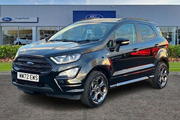Cruise control, e-Call (emergency call), Easy fuel capless refuelling system, Ford SYNC 3 nav system with DAB radio, 8 screen, emergency assistance, Apple car play/Android auto, 2x USB, 6 speakers, Ford pass connect, Intelligent speed limiter, PAS, Rear parking sensors, Rear view camera, Traffic sign recognition, Trip computer, Auto dimming rear view mirror, Automatic front wipers, Automatic headlights, Black roof rails, Body colour door handles, Body coloured bumpers, Chrome lower window surround, Electrically adjustable and heated door mirrors, Front fog lights, Front grille bars and surround in black, Headlight levelling control, Large rear roof spoiler, LED day running lights, LED third brake light, Power front and rear windows, Puddle lights, Quick-clear heated windscreen, Rear side wing doors, Rear wiper, ST Line body styling kit - Black headlamp bezel, front and rear sport bumpers, body colour lower door claddings, 12V socket in front and rear, 3 seat bench in 2nd row, 60/40 split rear seats, Ambient lighting, Centre console with sliding front armrest, Cooled glovebox, Courtesy lights with map reading light, Driver seat height/lumbar adjust, Driver's side glovebox, Driver/passenger sunvisors and lidded vanity mirrors, EATC - Electronic Auto Temperature control, Folding grab handles, Front head restraints, Front seat back map pockets, Illuminated glovebox, Illuminated luggage compartment, Isofix system on outer rear seats, Luggage compartment carpet, Neosuede/Partial sensico leather upholstery, Overhead console with sunglasses holder, Rake adjustable rear seats, Reach + rake adjustable steering column, Rear headrests, Sensico trimmed steering wheel, handbrake and gearshift gaiter with red stitching, Single front passenger seat, ST-Line Front floor mats with red stitching, Stainless steel sports pedals, Storage drawers under front seats, Tie down hooks, Variable boot floor, 3x3 point rear seatbelts, ABS, Autonomous emergency braking, Child locks on rear doors, Curtain airbags, Driver airbag, Drivers knee airbag, Electronic Stability Programme with hill launch assist, Front passenger airbag deactivation, Front side airbags, Passenger airbag, Pre collision assist system with AEB, Seatbelt reminder for driver and front passenger, Traction control, Tyre pressure monitoring system