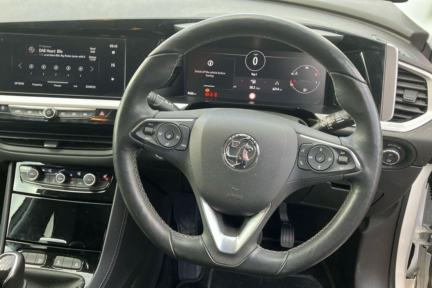 12V Electrical Accessory Socket 12in Digital Instrument Cluster 19in Alloy Wheels - Diamond Cut - Bi-Colour 360 Degree Panoramic Parking Camera 60-40 Split-Folding Rear Seat Back ABS - Anti-Lock Braking System Adaptive IntelliLux LED Pixel Headlights Advanced Park Assist Airbags - Front Seat Side-Impact Ambient Lighting Centre Console Downlighter Armrest - Drivers Automatic Emergency Braking with Pedestrian Detection Automatic Lighting Control Automatically Dimming Anti-Dazzle Rear-View Mirror Black Door Panels with Black Premium Leather-Effect Inserts Black Side Window Trim Body Coloured Door Handles Body-Colour Lower Front and Rear Bumper Body-Colour Upper Front Bumper Central Locking Centre Rear Armrest with Load-Through Facility Child Proof Locks on Rear Doors Cruise Control with Speed Limiter Dark Tinted Rear Windows Dax Decor Facia Panel with Palladium Medium Finish Deactivation Switch For Front Passengers Front and Side Impact Airbags Digital Central Facia Display Digital Fuel Gauge with Low Fuel Level Warning Light Digital Speedometer and Rev Counter Digital Water Temperature Gauge with Warning Light Door Mirrors - Black Door Mirrors - Electrically Adjustable-Heated and Power Folding Driver Drowsiness System Driver Information Display Drivers and Front Passengers Airbags Drivers and Front Passengers Ergonomic Active Heated Sports-Style Seats - AGR Approved Drivers and Front Passengers Sunvisors with Illuminated Vanity Mirrors Dual-Zone Electronic Climate Control Electric Parking Brake Electrically Operated Front and Rear Windows Front and Rear Parking Distance Sensors Full Size Curtain Airbags for Driver - Front Passenger and Outer Rear Seat Passengers Headlights - High Beam Assist Heated Steering Wheel Heated Windscreen High-Gloss Black Griffin for Vizor and Tailgate with High-Gloss Black Grandland Tailgate Lettering Hill Start Assist Illuminated Luggage Area Intermittent Rear Window Wash-Wipe Isofix Compatible Child Seat Mountings Located on Front Passenger and Outer Rear Seats Keyless Entry and Start LED Daytime Running Lights LED Front Fog Lights LED Tail Lights Lane Keep Assist with Lane Departure Warning Luggage Restraint Net Magic Wash System Multi-Function Trip Computer Multimedia Navi Pro System Power Tailgate with Foot Sensor Rain Sensitive Windscreen Wipers Rake and Reach Adjustable Steering Rear Reading Lights Rear Spoiler Remote Control Security Alarm System Roof - Black Roof Rails - High Gloss Black Satellite Navigation Display Shift - Up-Down Indication Light Side Blind Spot Alert Silver-Effect Protective Front and Rear Skid Plates Soundproofed Insulated Windscreen Speed Sign Recognition Speed-Sensitive Electric Power-Assisted Steering Steering Wheel - Flat Bottom - Leather Effect Steering Wheel Mounted Audio Controls Storage Pockets on Front Seat Backs TPMS - Tyre Pressure Monitoring System Two-Speed Windscreen Wipers with Variable Intermittent Wipe Vauxhall Connect Wireless Charger