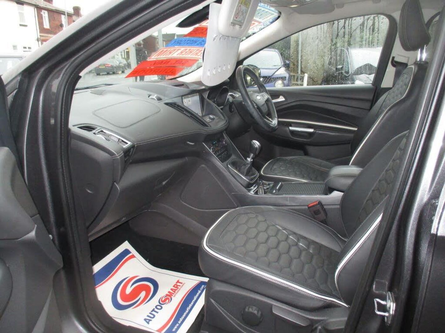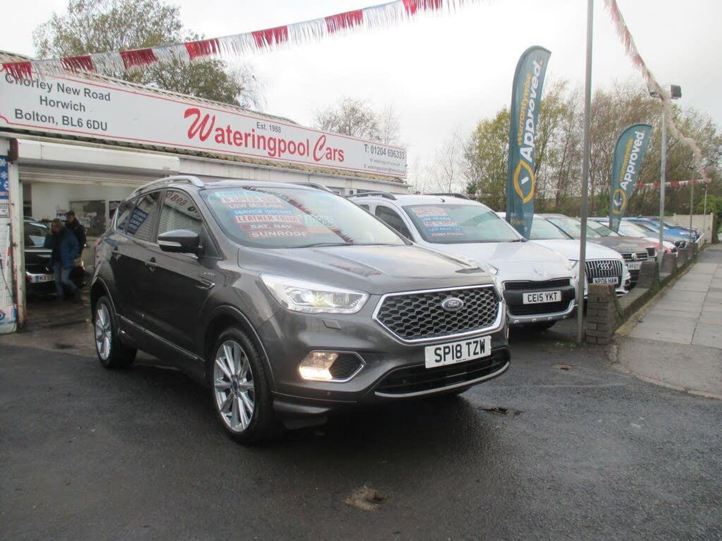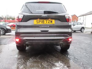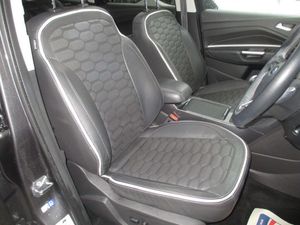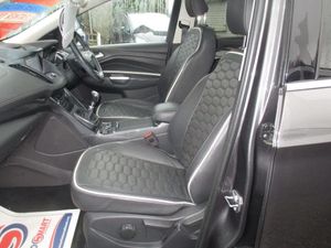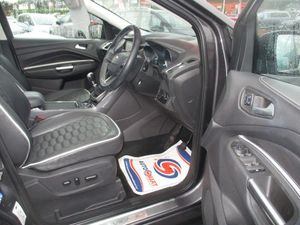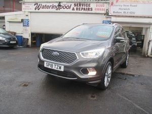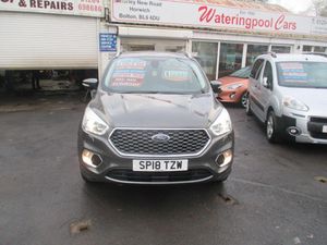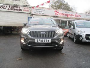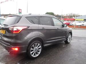 FINISHED IN TEAL GREY METALLIC WITH FULL QUILTED BLACK LEATHER TRIM WITH WHITE TRIM,GENUINE 63K WITH SERVICE HISTORY,FULL VIGNALE SPEC INC HEATED/ELECTRIC /MEMORY SEATS,SATNAV/REVERSE CAMERA,PANORAMIC ROOF,FRONT/REAR PARKING SENSORS+++++This 2018 Ford Kuga TDCi Vignale offers a superb blend of style and practicality, boasting a Euro 6 compliant 1.5 litre diesel engine. As a Vignale model, it comes with distinctive Vignale bumper styling and impressive 19 inch alloy wheels, enhancing its sophisticated appearance. Inside, you'll appreciate the convenience of a power opening panoramic roof, perfect for enjoying the open sky, and the added safety of the Blind Spot Information System, which includes Blind Spot Assistance to help you navigate traffic with greater confidence. The gear shift indicator is also present to help you drive more efficiently.This Kuga is designed to be economical to run, achieving an impressive highlight fuel economy of 54 miles per gallon. Furthermore, its low insurance group rating and low CO2 emissions indicate that it is a more cost effective choice compared to many other vehicles in its class, making it an attractive option for those seeking both performance and affordability.-S/H,NAV,ROOF,LEATHER,REV/CAMRA-FINANCE ARRANGED,P/X WELCOME,VEHICLES HPI CHECKED,WARRANTY INCLUDED,EXTENDED WARRANTIES AVAILABLE