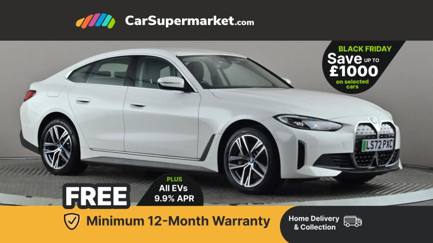 Active guard plus,Attentiveness assist,Automatic tailgate operation,BMW legal emergency call,BMW remote services,BMW Teleservices,Condition based service,Cruise control with brake assist,Drive off assistant,Driving experience switch,Electric Power Steering (EPS) with Servotronic,Engine start/stop button,iDrive controller,Integrated owners handbook,Personal Profile - automatic lock when driving away selectable,Preparation for active cruise control with stop and go,Run flat indicator,Service interval indicator,Smartphone integration,Speed limiter,Widescreen display,AC charging up to 11kW,DC charging up to 150kW,eDrive exterior sound,Electric drive unit,Electronic differential lock,High voltage battery,Mode 2 flexible charger,Mode 3 charging cable,Safety battery terminal clamp,Standard suspension,2x USB Type C ports in front centre console for charging and data transfer,BMW iconic sound electric,DAB tuner,Auto dimming rear view mirror,Auto dimming with folding wing mirrors,BMW badge on bonnet and tailgate with blue ring around the badge,BMW radiator grille partially with blue accent,BMW radiator grille with mesh grille/end face of the nuggets in quartz silver matt,Body colour door handles,Body colour mirror caps with bottom segment in matt black,Electric adjustable exterior mirrors,Electric windows with trap release and convenient opening/closing feature,Exterior mirror heated,Fading support,Follow me home headlights,Front and rear bumper system,Front apron plastic in body colour,Headlight beam throw control,Heated washer jets,High gloss black mirror triangles,I badge with blue highlight on front ornamental grille,I4 charging socket flap, right, rear in body colour,Integrated outside door handles, flush design, flush integrated, handle recess indirectly illuminated,Lateral blue accent including air breather,LED daytime running lights,LED direction indicator lenses,LED eyebrow light,LED front fog lights,LED rear lights,M Sport entry door sill strips,Mirror glass aspheric on driver's side, convex on passenger side,Model logo - Rear and right model designation, Rear left i4 inscription,Number plate panel integrated into front bumper and tailgate,One piece front bumper cover including towing eye cover in body colour,Rain sensor including auto headlights activation,Rear bumper with blue accent,Rear side wing doors,Rear wiper,Reversing light,Roof fin in body colour,Side frame trim strip in black matt,Side LED indicators,Trailer stabilisation logic,Turn indicators in side mirrors,Visible VIN plate,Welcome lighting,Window cavity seal in black matt,12v power outlet - luggage side,12V power outlet in front console,2 front cupholder in centre console with clamping elements and matt black inlay,3 seat bench in 2nd row,3 spoke sports leather steering wheel,40:20:40 split folding rear seat and rear centre armrest with two cupholders,Adjustable steering column,Ambient door pocket lighting,Ambient inside door handle light in rear,Ambient interior lighting with 11 pre-defined selectable light designs including 6 colours,Ambient light design projected onto the left and right entering and exiting area,Ambient storage compartment lighting in the centre console,Automatic air conditioning with 3 zone control,BMW ID,Compartment in front of cupholder,Contour lighting in instrument panel and door trim panel,Dynamic function of contour lighting,Front and rear ambient footwell lighting,Front and rear armrest with integrated door trim,Front and rear door exit lights,Front and rear door pockets,Front sport seats,Glovebox light,Headrests for all seats,Heated front seats,Illuminated armrest storage compartment,Interior light and reading light,Lashing eyelets in boot,Luggage compartment light,Make-up mirror lights,Manual adjustment of seat height, fore/aft position, seat depth, backrest tilt and head restraint height,Multifunction steering wheel,Rear storage compartment,Single front passenger seat,Storage tray and compartment with cover in centre console,Sunvisors with vanity mirrors and ticket pocket,Through loading system,Toolkit,M aerodynamic pack - I4,3 point seatbelts on all seats,Acoustic protection for pedestrians,Active protection,Anti lock braking system (ABS) with brake assist,Automatic Stability Control (ASC),Battery safety cut-off,Brake drying,Brake energy regeneration,Brake pretensioning,Cornering brake control (CBC),Crash sensor activating central locking release, hazard warning lights,Driver and front passenger airbags,Driver and passenger side airbags,Driver/passenger seat occupancy sensor,Dynamic brake control,Dynamic stability control + (DSC+),Dynamic Traction Control - DTC,Electromechanical parking brake,Front and rear curtain airbags,Front and rear ventilated brake disc,Head airbags for all 4 outer seats,Hill start assistant,ISOFIX child seat mounting on rear outer seats,Manual child lock in rear doors,Recuperation system,Side impact protection,Twin horns,Tyre pressure sensor,Warning triangle and first aid kit